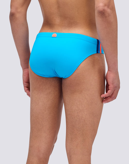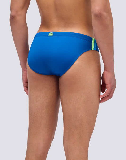 BAÑADOR CORTO CON CINTURA ELÁSTICA Y ABERTURAS LATERALES REDONDAS