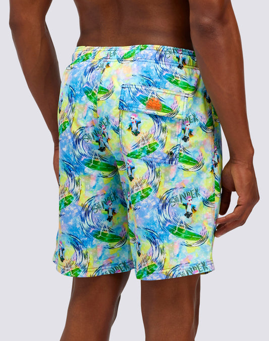 BAÑADOR LARGO CON CINTURA ELÁSTICA ESTAMPADO FLY&DYE