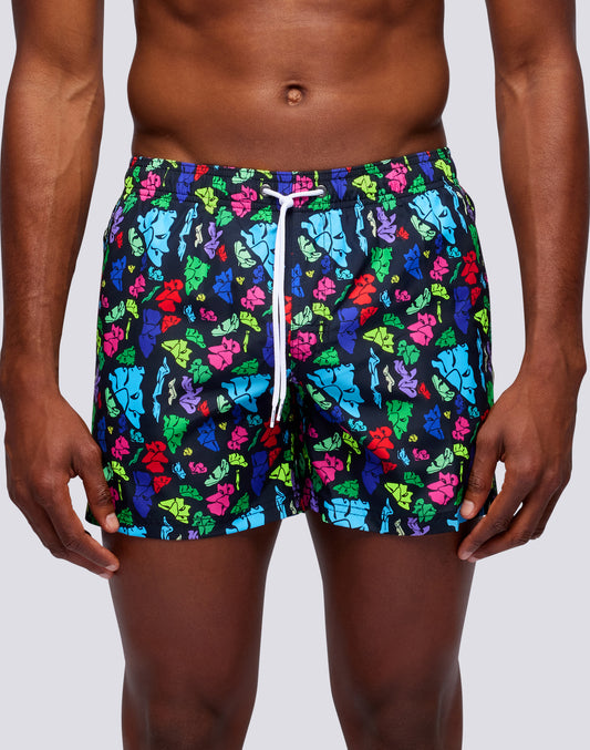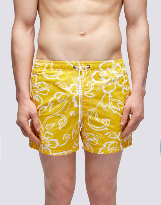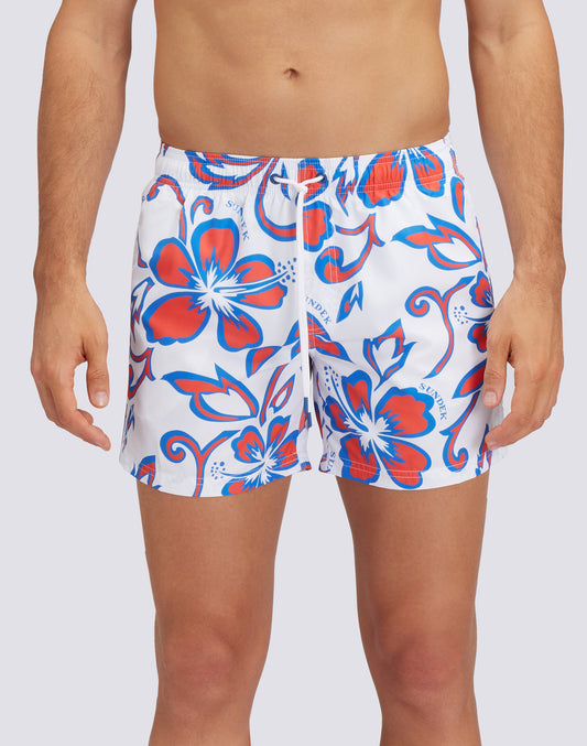 TRAJE DE BAÑO CORTO CINTURA ELÁSTICA POLIÉSTER RECICLADO REPREVE® ESTAMPADO HAWAIIAN POP