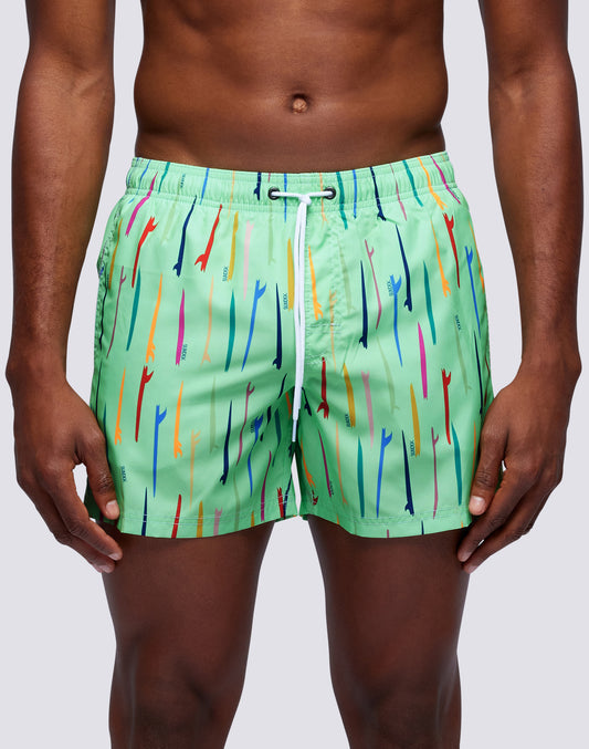 TRAJE DE BAÑO CORTO ICONIC DE TAFETÁN CON CINTURA ELÁSTICA GOLDENWAVE ESTAMPADO SK23