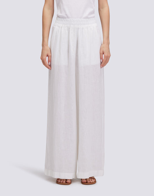 PANTALÓN LARGO DE LINO CON CINTURA ELÁSTICA AJUSTABLE