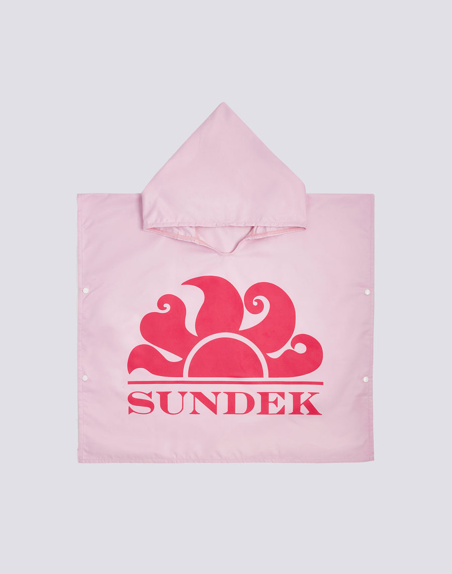 Un accesorio esencial, también adecuado como idea de regalo. Es el poncho de microfibra para niños, con estampado Sundek en la parte delantera y capucha. En tejido ligero obtenido del reciclaje. Disponible para niño y niña y 2 variantes de color.