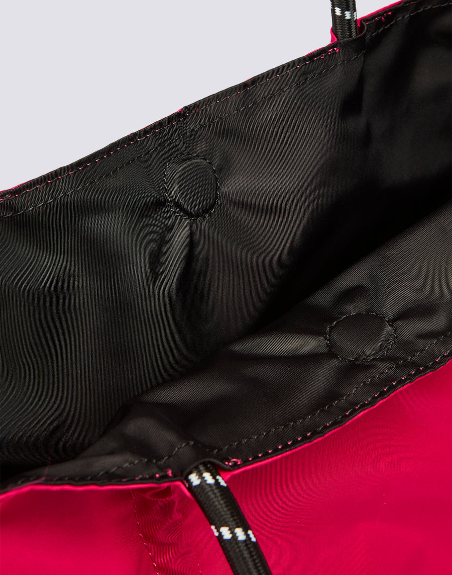 Bolso mediano con volantes en ambos lados y asas de doble color.