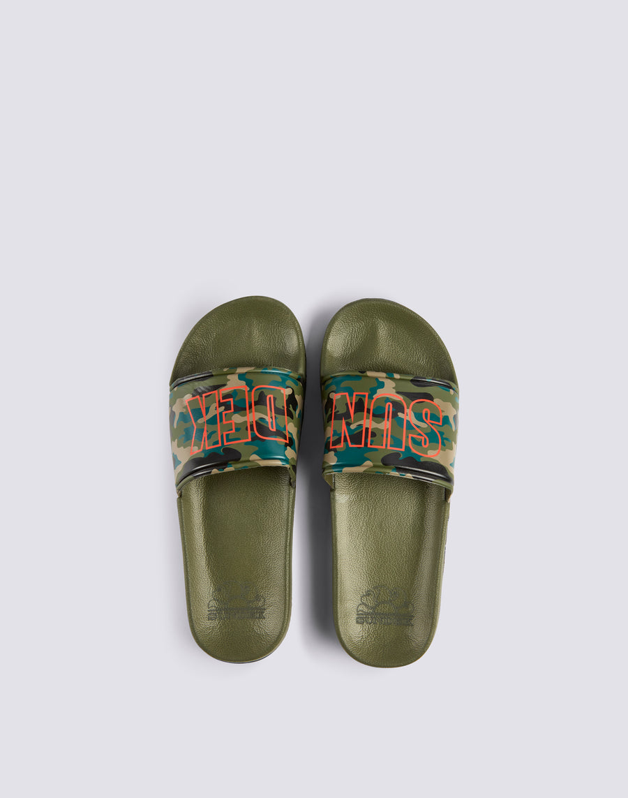 Zapatilla bandeau con estampado de camuflaje y logo Sundek. Ajuste cómodo. Altura de la suela 2,5 cm.