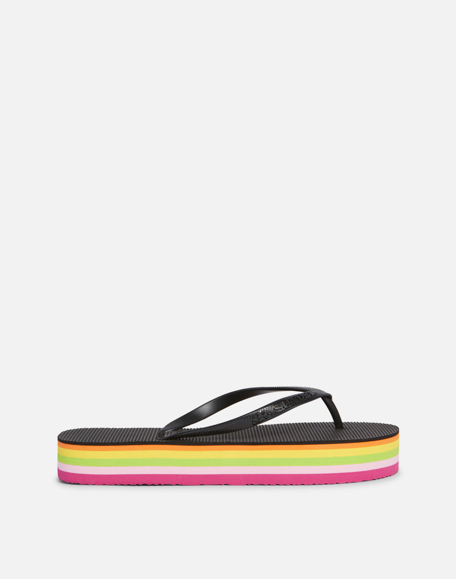 Si nunca renuncias a la plataforma, elígela también para tus chanclas de playa de dedo: actuales, ligeras, cómodas y con el detalle multicolor que completa la suela extra.