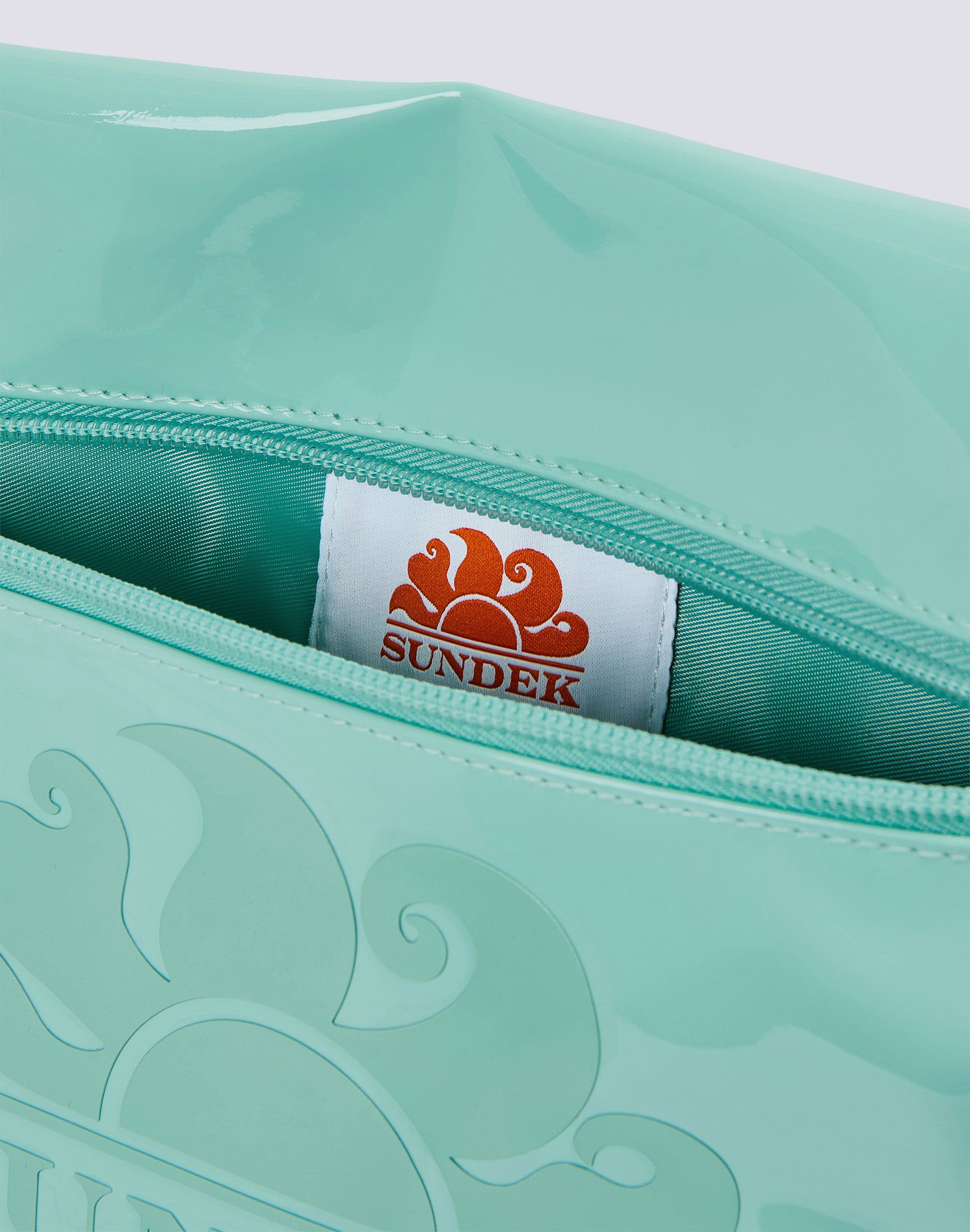 Bolso de mano impermeable con mosquetón y asa, para llevar contigo donde quieras. Un bolso versátil que puedes usar solo o enganchar a bolsos y mochilas gracias al práctico mosquetón. El efecto brillante y las costuras frontales le dan al bolso un toque de carácter imprescindible. Además, es impermeable para proteger tus objetos más importantes.
