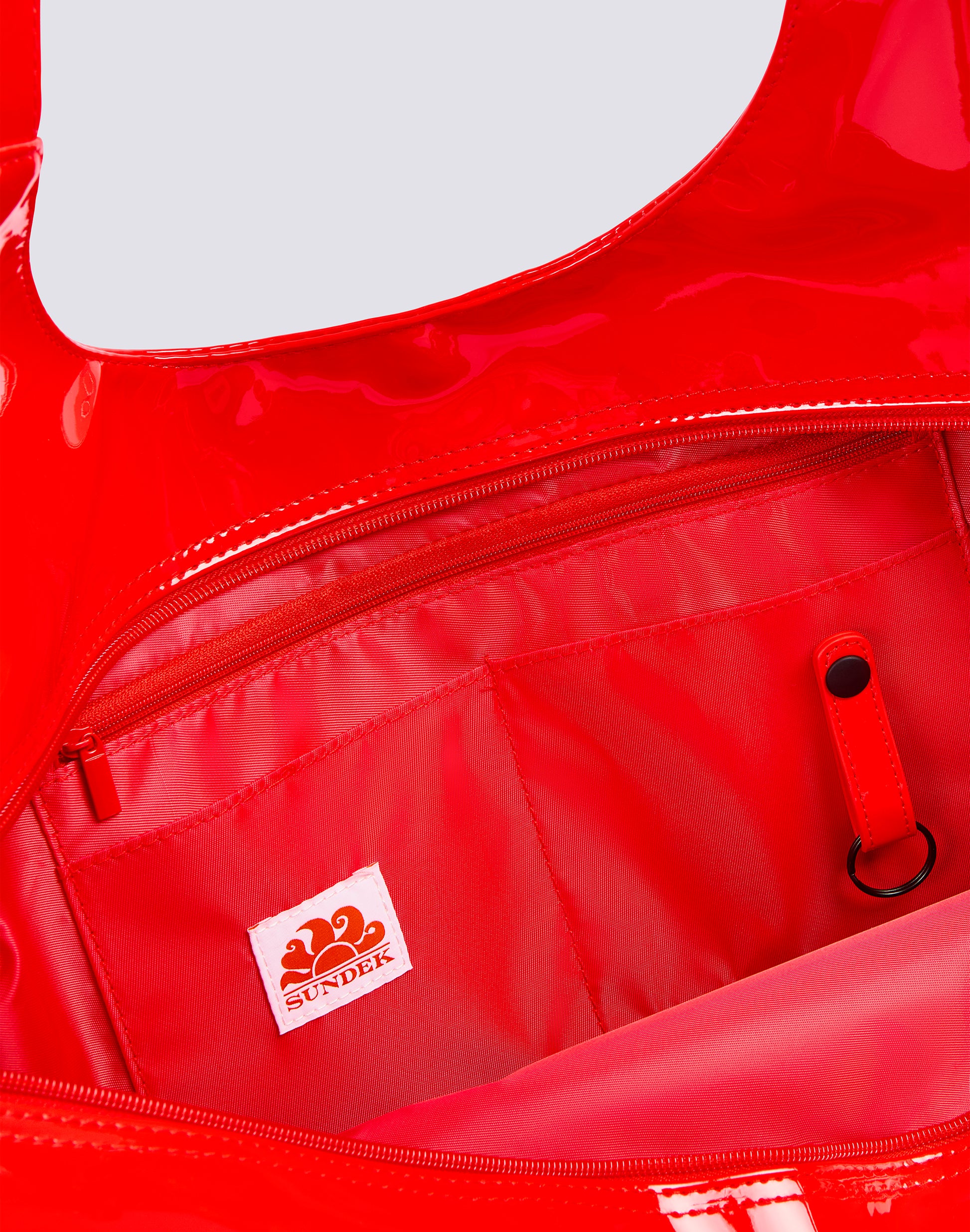 Amplia y espaciosa, es una bolsa de playa con carácter, perfecta también para otras ocasiones informales y para llevarla al gimnasio.