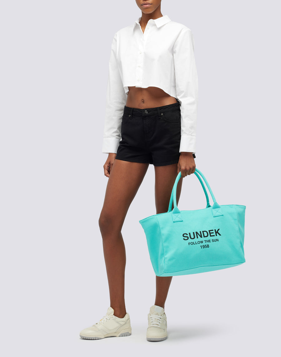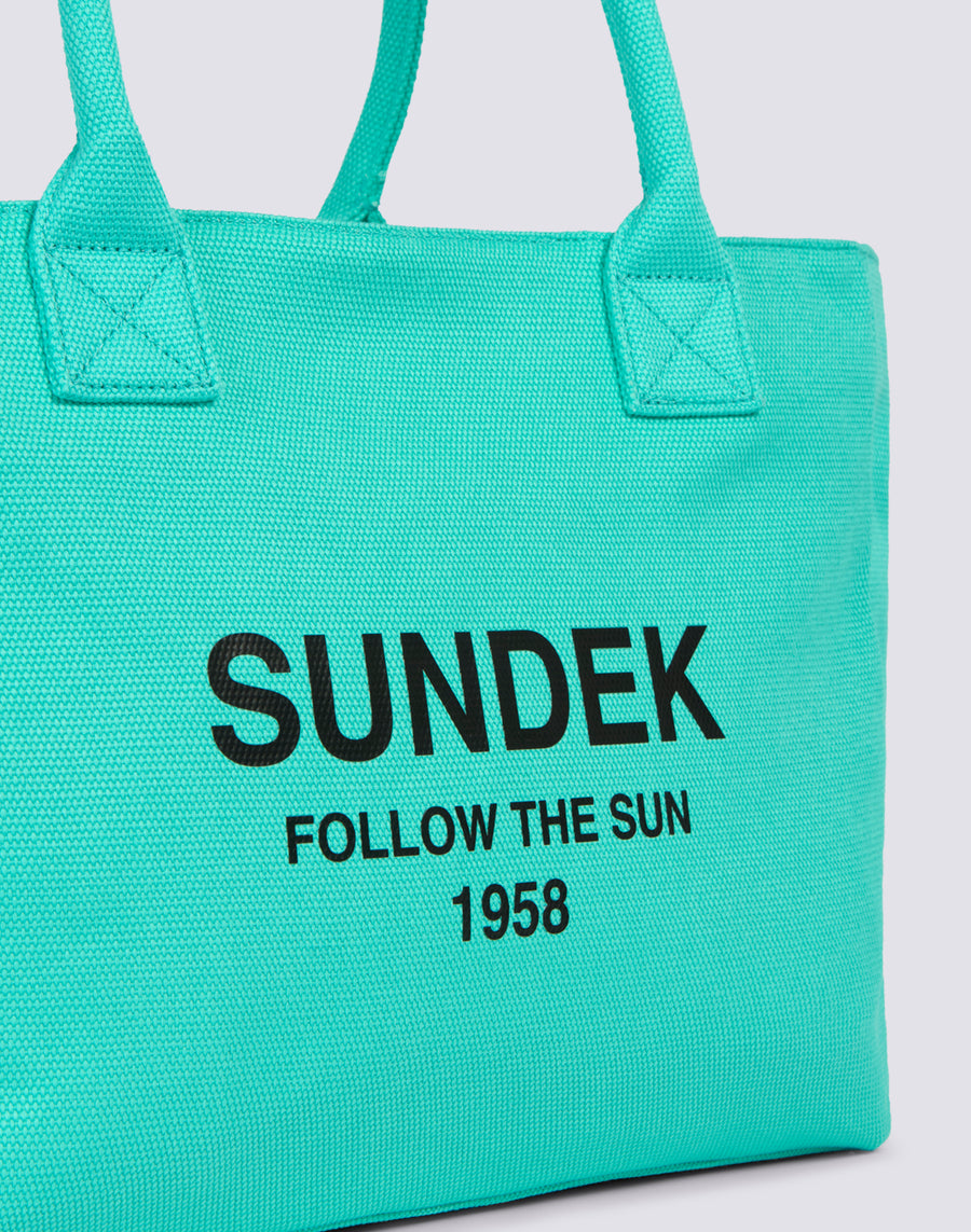 Logotipo y eslogan de Sundek impresos en contraste en la parte delantera