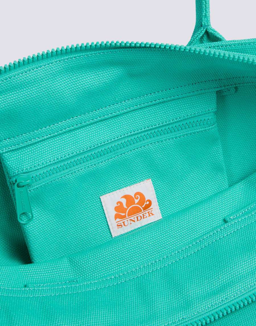Un bolso shopper con un look deportivo y chic, fácil de combinar con cualquier atuendo informal, perfecto por su practicidad para llevar todo lo que necesitas en tus actividades diarias. No está forrado y tiene un bolsillo interior para encontrar rápidamente los objetos que quieres tener a mano.