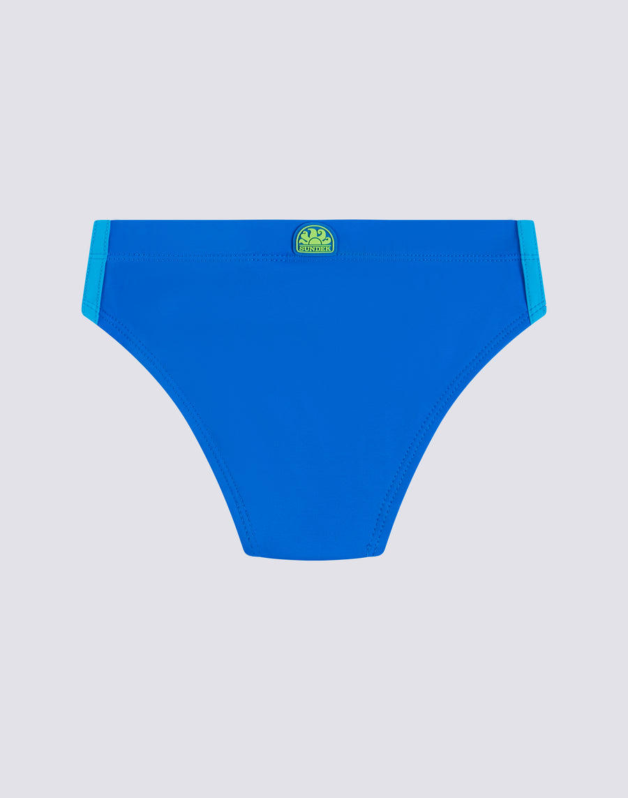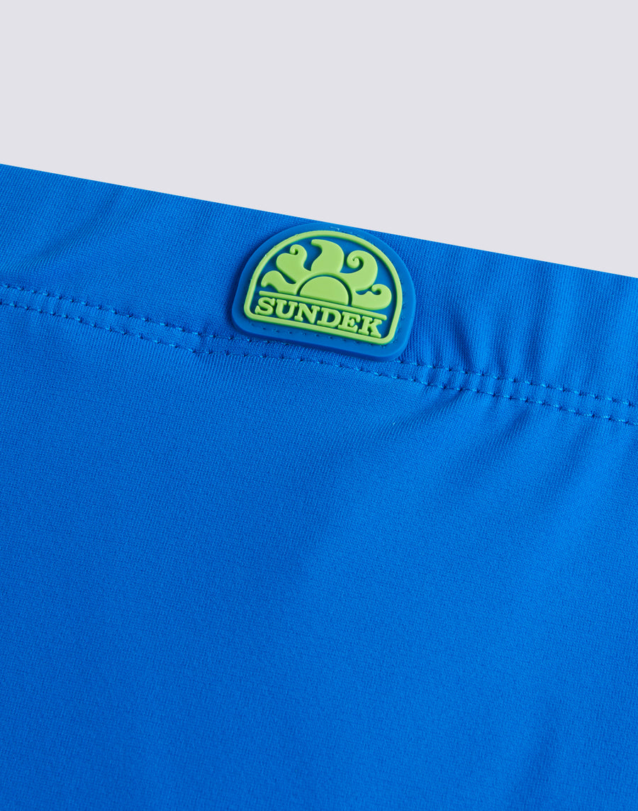Sumérgete en los colores del arco iris. Bañador para niño en nailon Econyl regenerado.