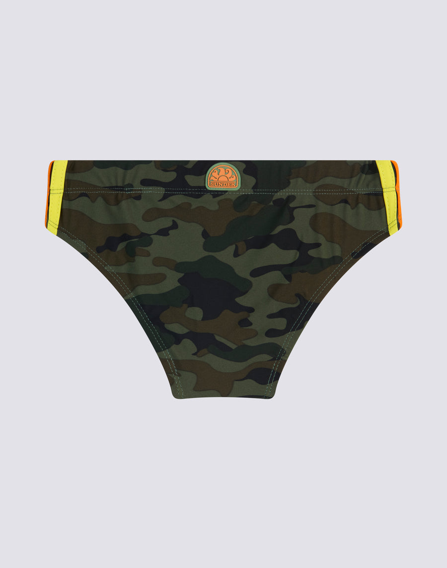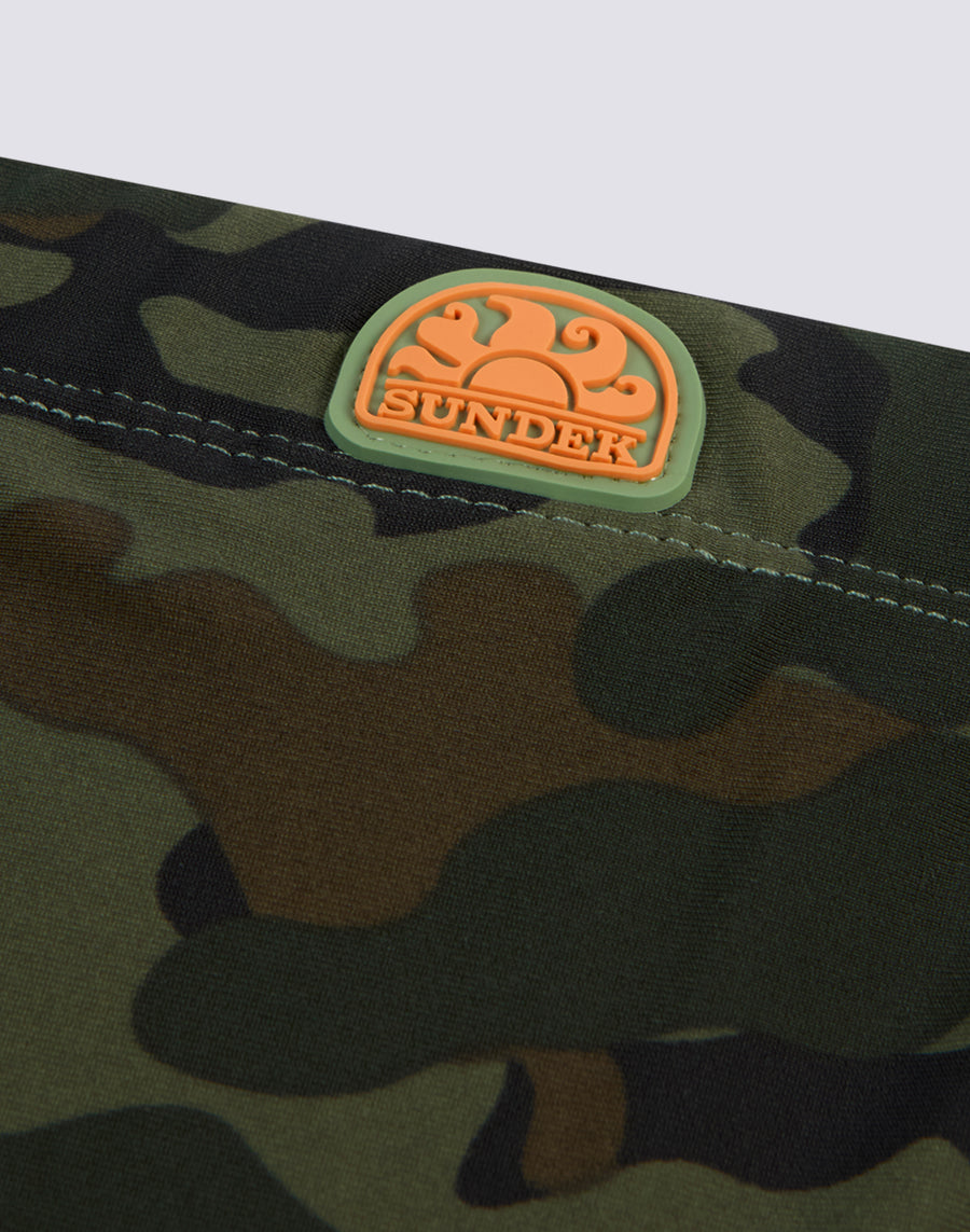 Bañador de niño con estampado de camuflaje. Cómodo gracias al elástico en la cintura y al cordón ajustable, es el bañador que tu hijo podrá llevar fácilmente para jugar y bañarse. Longitud de la costura externa: 6 cm (tamaño 6 años).