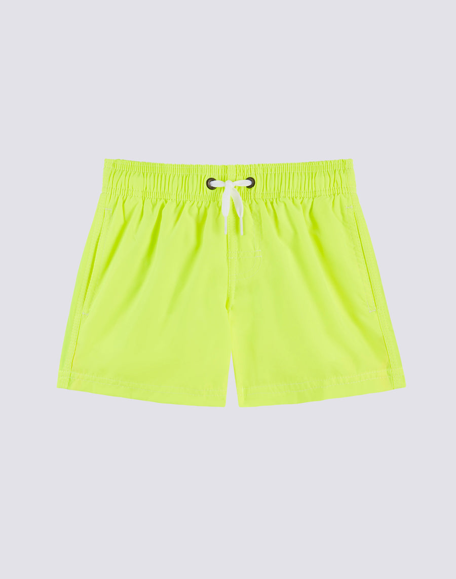 Color intenso y tejido ultracómodo y de secado rápido para este short de playa para niño. Un modelo que acompañará a tu hijo en sus múltiples actividades en vacaciones, perfecto para moverse y jugar libremente.