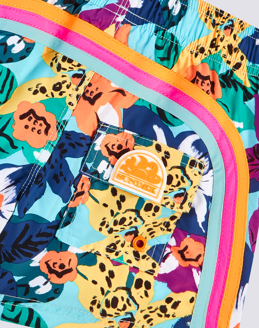 REPREVE® TRAJE DE BAÑO CORTO CON CINTURA ELÁSTICA Y ESTAMPADO NABIS BLOOM