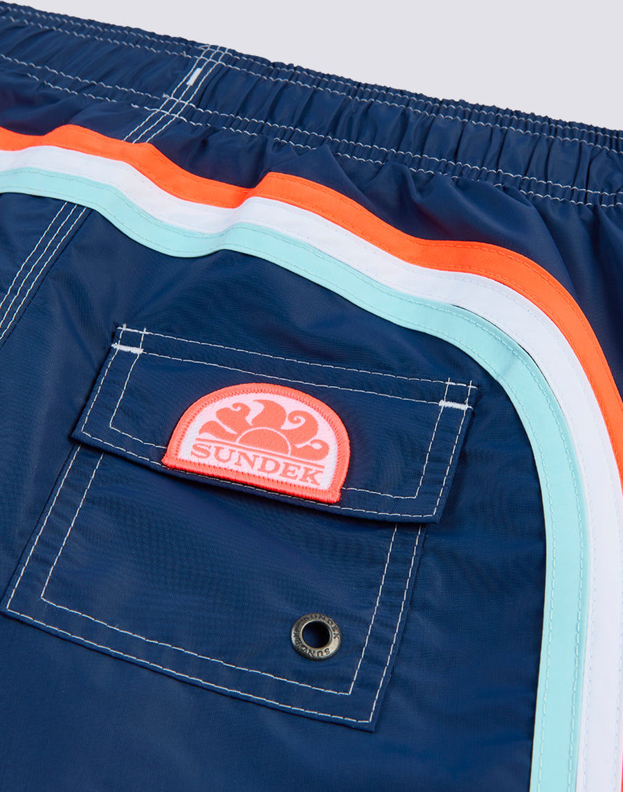 Color intenso y tejido ultracómodo y de secado rápido para este short de playa para niño. Un modelo que acompañará a tu hijo en sus múltiples actividades en vacaciones, perfecto para moverse y jugar libremente. Está confeccionado con nuestra tela de tafetán de nailon tradicional y está construido con costuras de tres agujas que lo hacen duradero con el tiempo. Para empacar, año tras año.