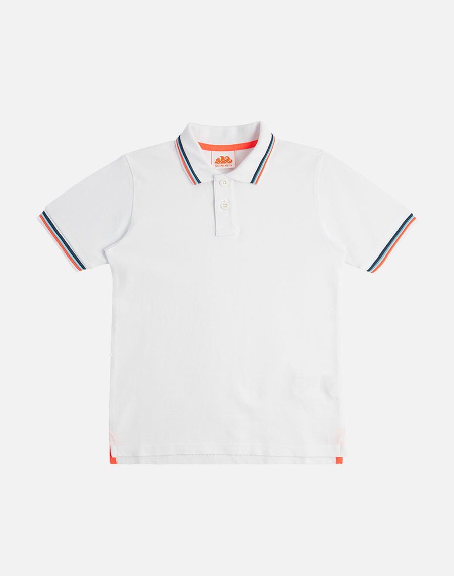 El polo, un prenda atemporal y eterna en piqué de algodón suave, color sólido con ribete tricolor para un toque extra de carácter.