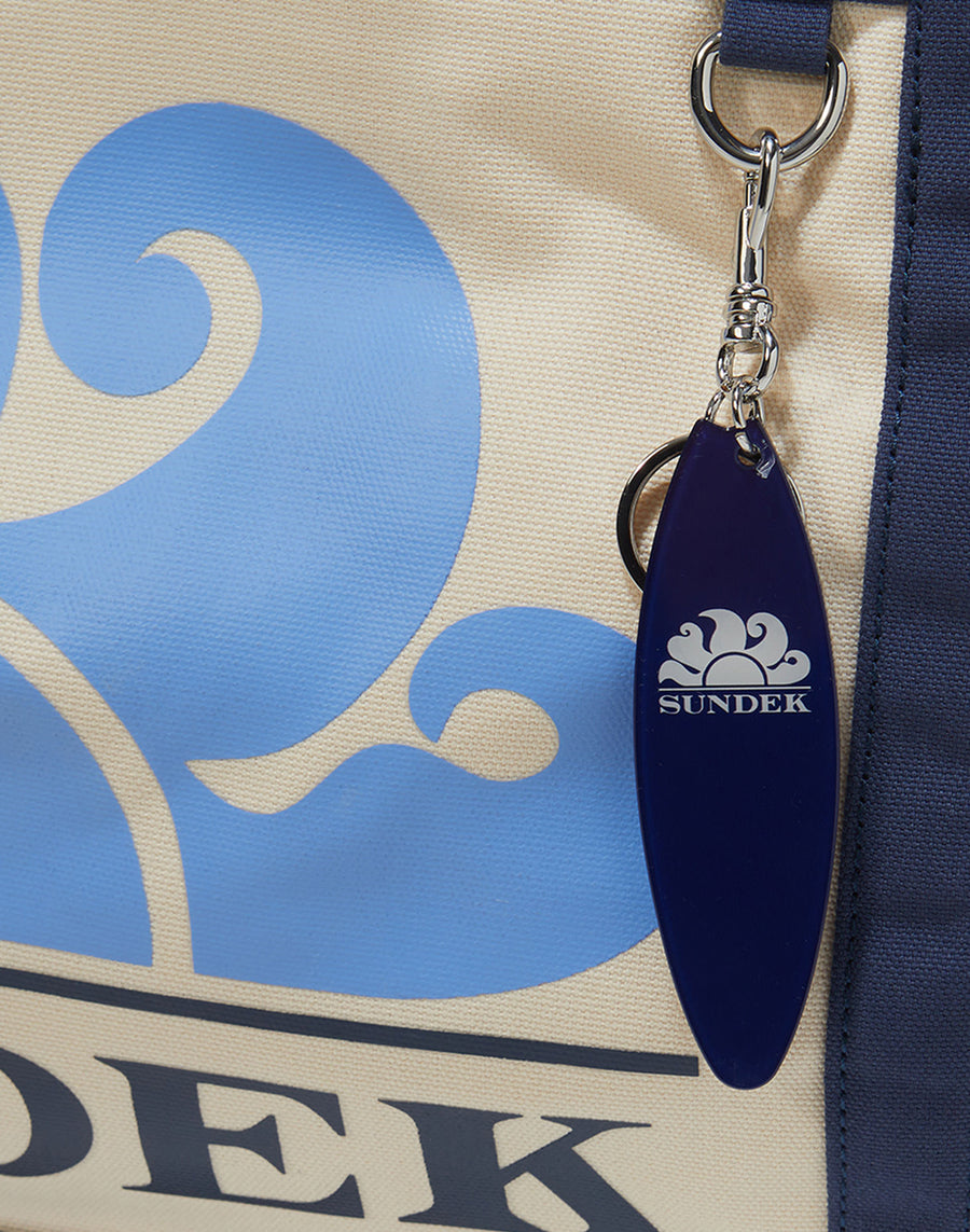 Bolso de mano medium de lona con logotipo Sundek estampado. Charm con la forma característica de una tabla de surf
