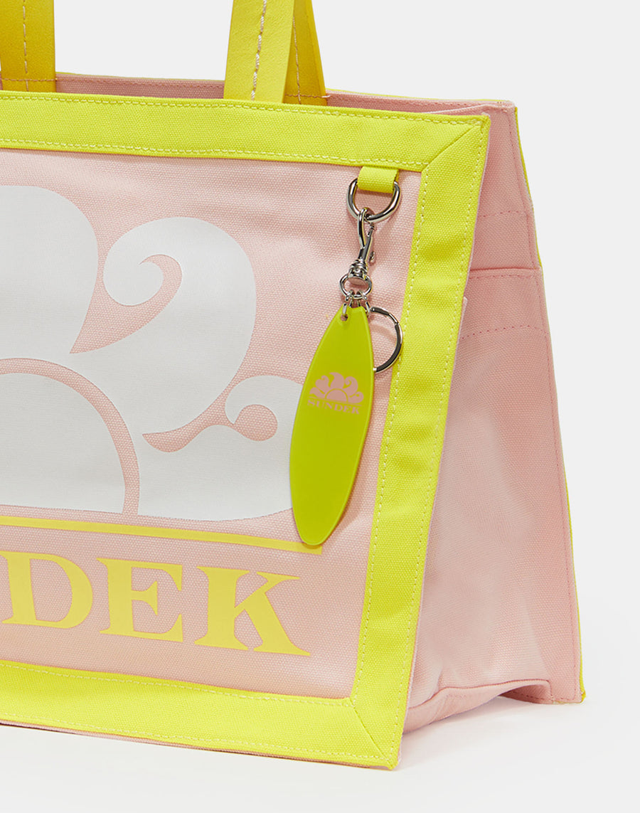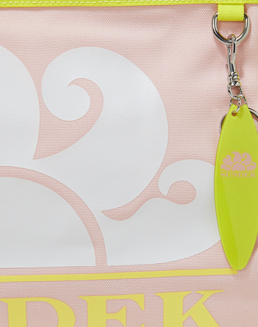 Bolso de mano medium de lona con logotipo Sundek estampado. Charm con la forma característica de una tabla de surf