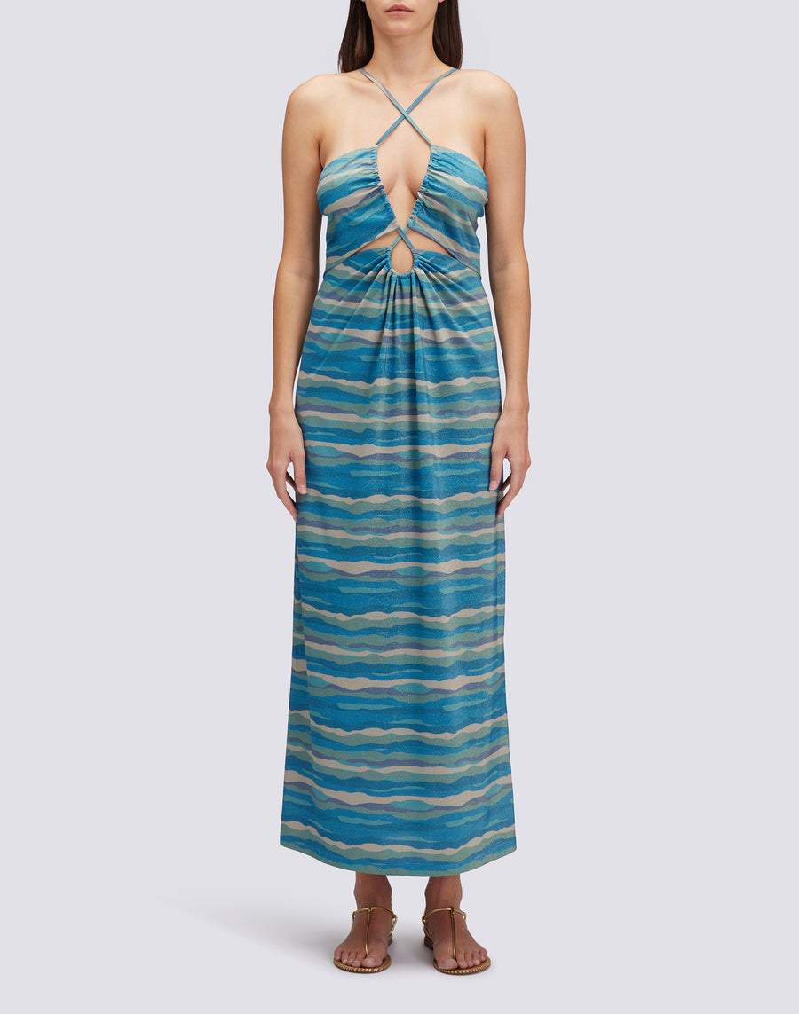 VESTIDO LARGO EFECTO LÚREX