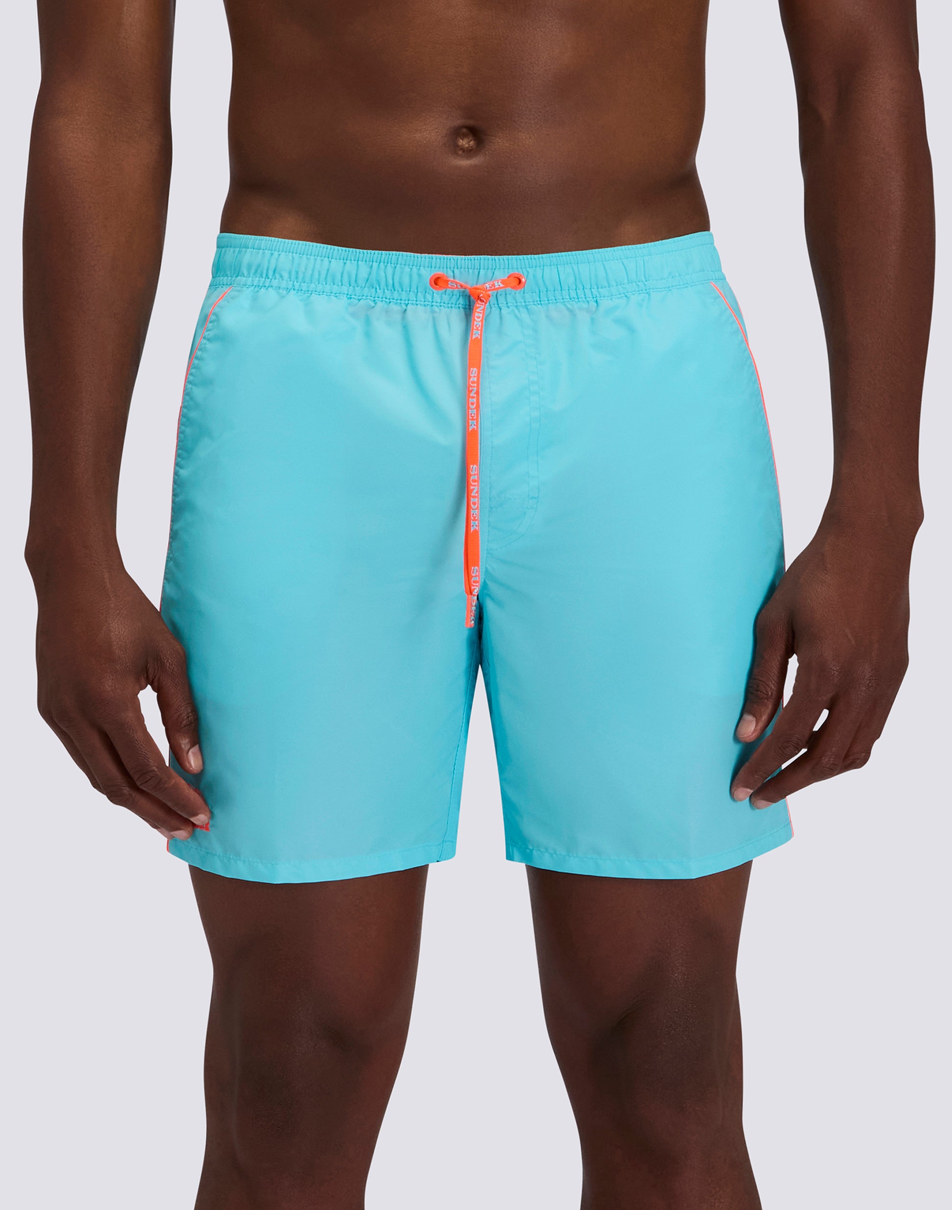 El bañador para hombre M420BDTA100 combina el estilo clásico de Sundek con un detalle distintivo: el ribete en contraste que realza el diseño. Este bañador de largo medio con cintura elástica ofrece comodidad y un look característico.
