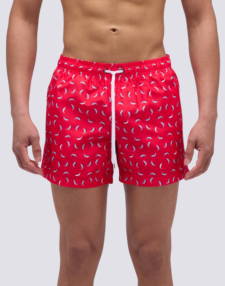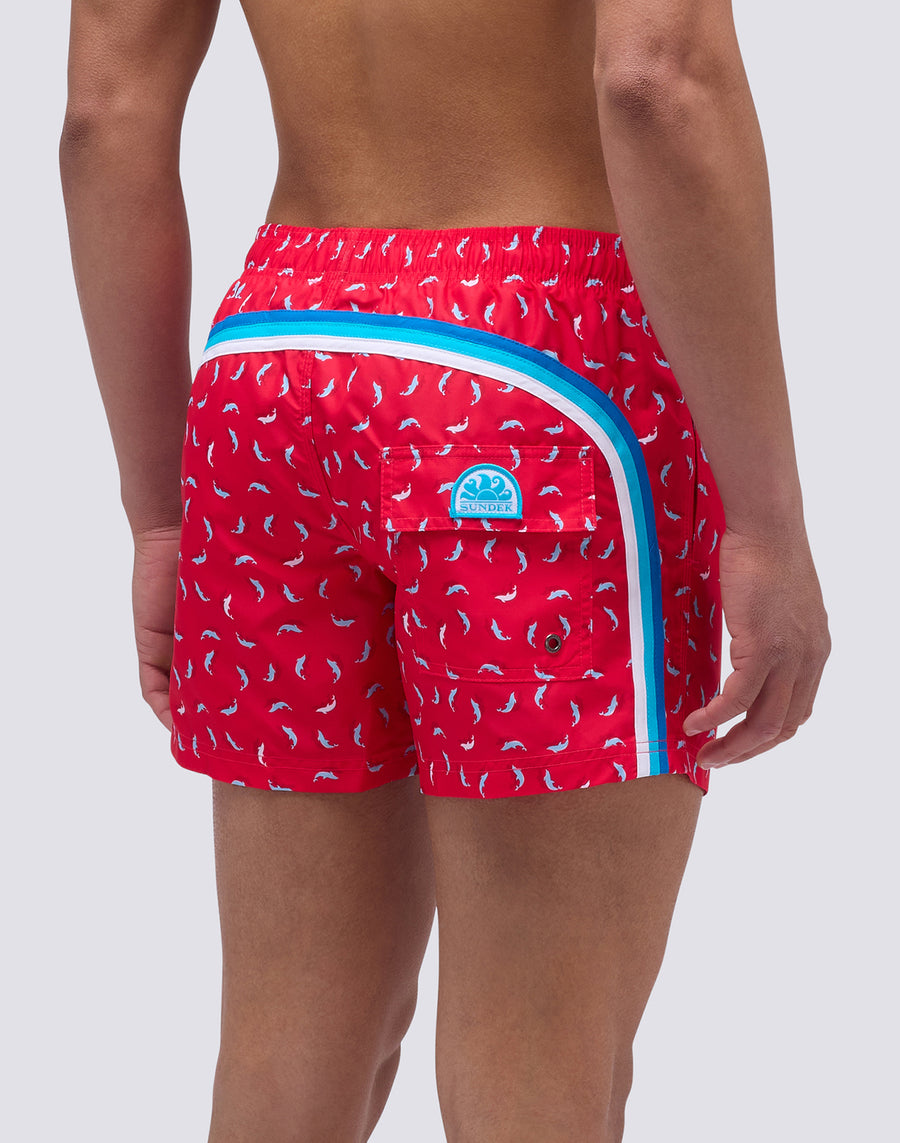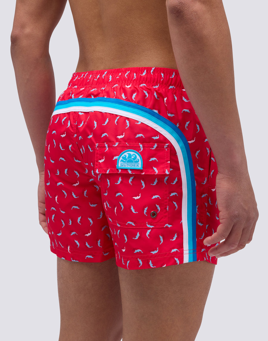 BAÑADOR CORTO DE POLIÉSTER RECICLADO CON ELÁSTICO EN LA CINTURA Y ESTAMPADO DE DELFINES