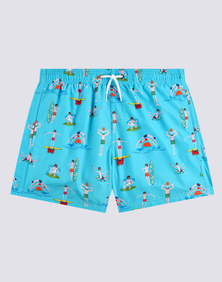 TRAJE DE BAÑO CORTO CON CINTURA ELÁSTICA Y MICROESTAMPADO BEACH BOY