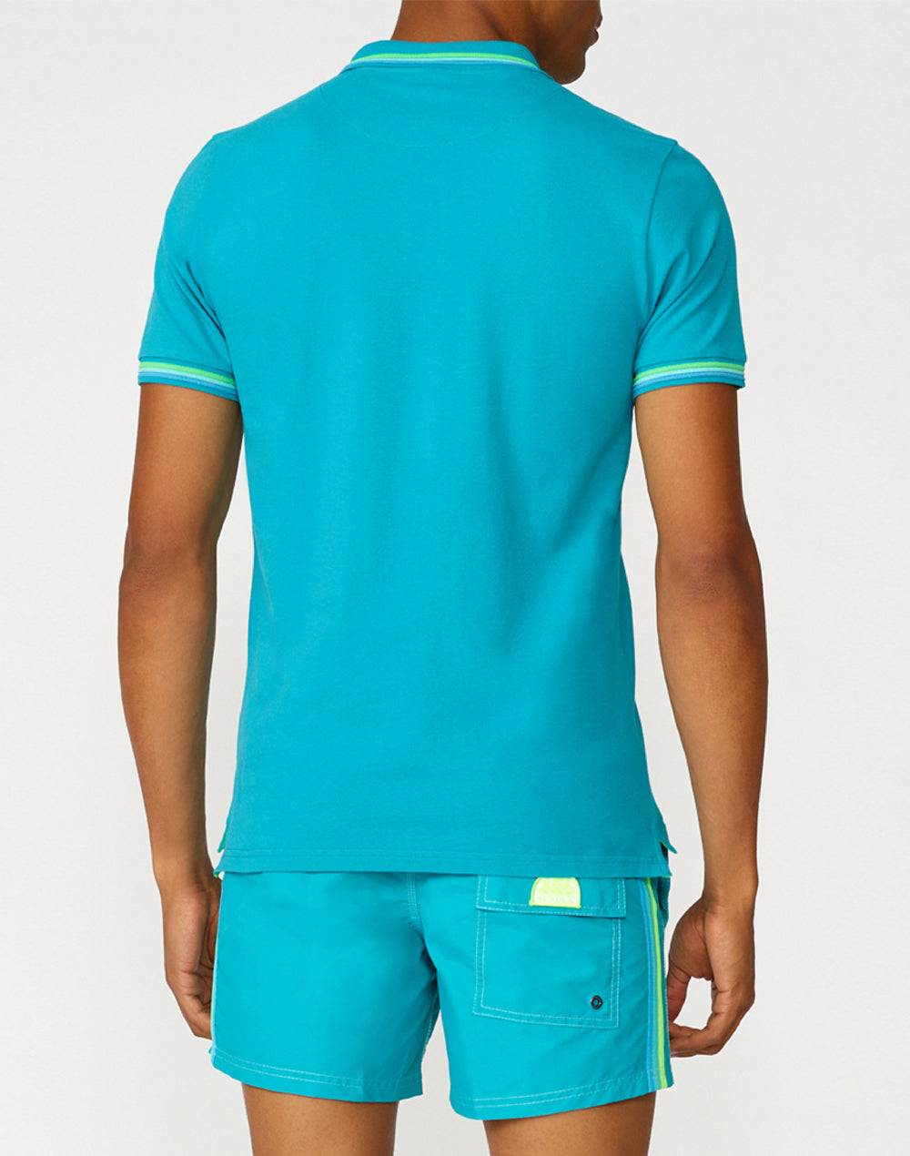 El polo de hombre tiene que ver con los detalles con el cuello y los puños detallados con el icónicas bandas tricolores, la firma de Sundek. Perfecta para combinar con vaqueros, pantalones casual y bermudas, dando un toque de personalidad a los outfits.