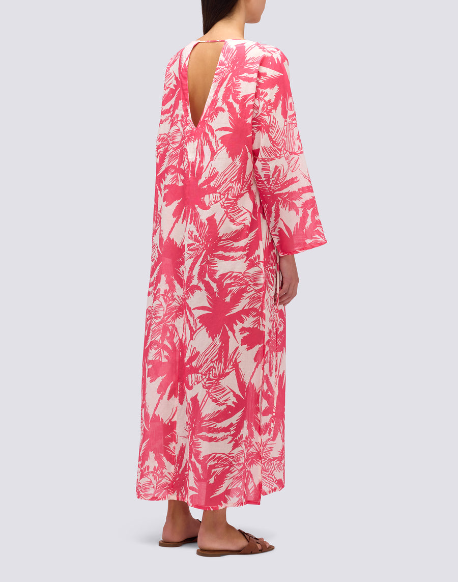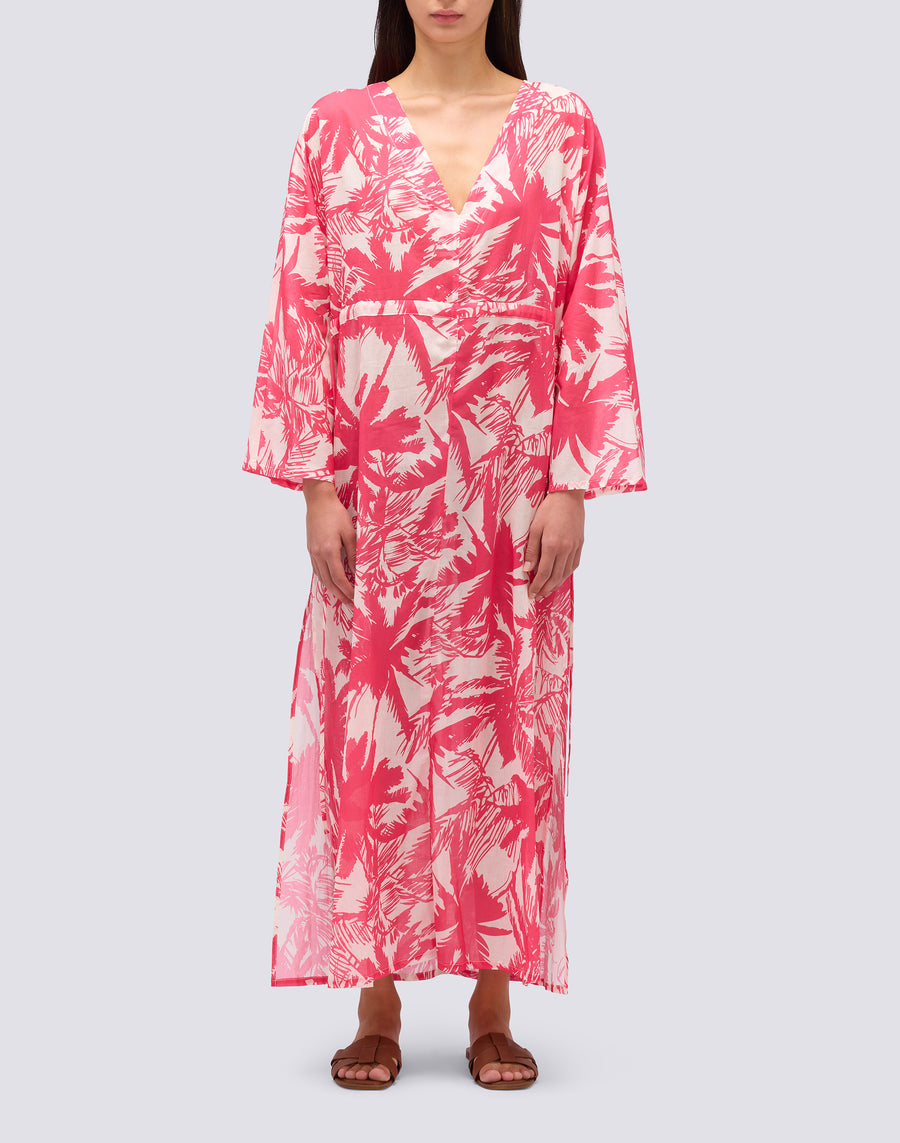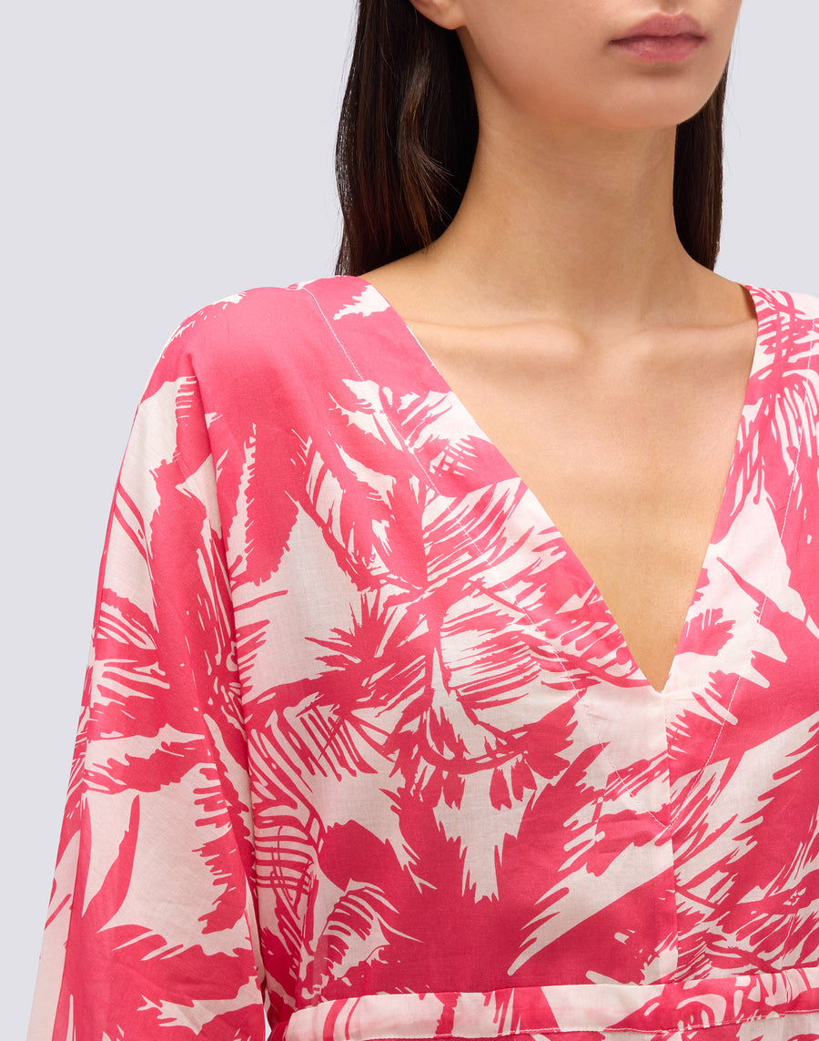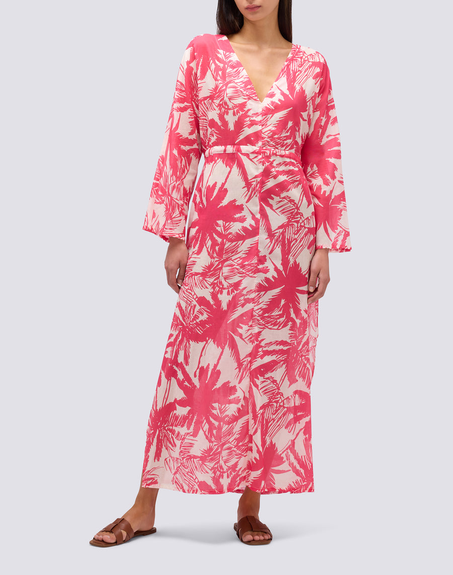VESTIDO LARGO DE GASA DE ALGODÓN CON ESTAMPADO DE SABANA TROPICAL
