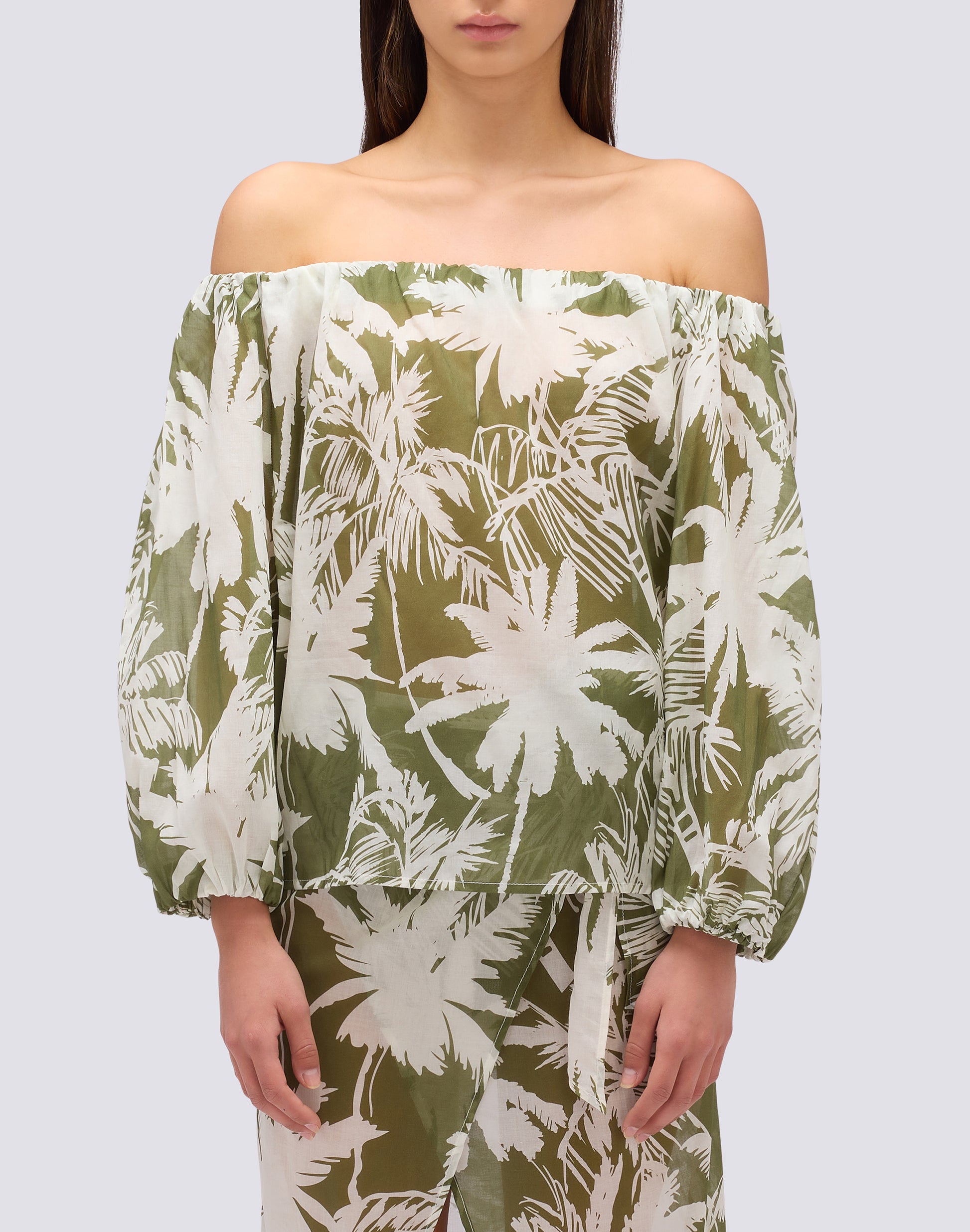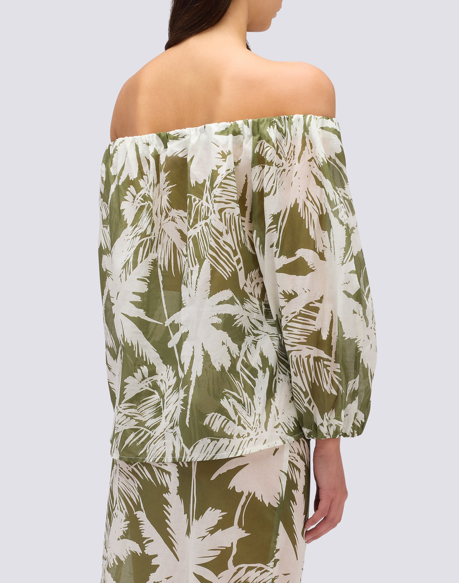 BLUSA DE GASA DE ALGODÓN CON ESTAMPADO DE SABANA TROPICAL