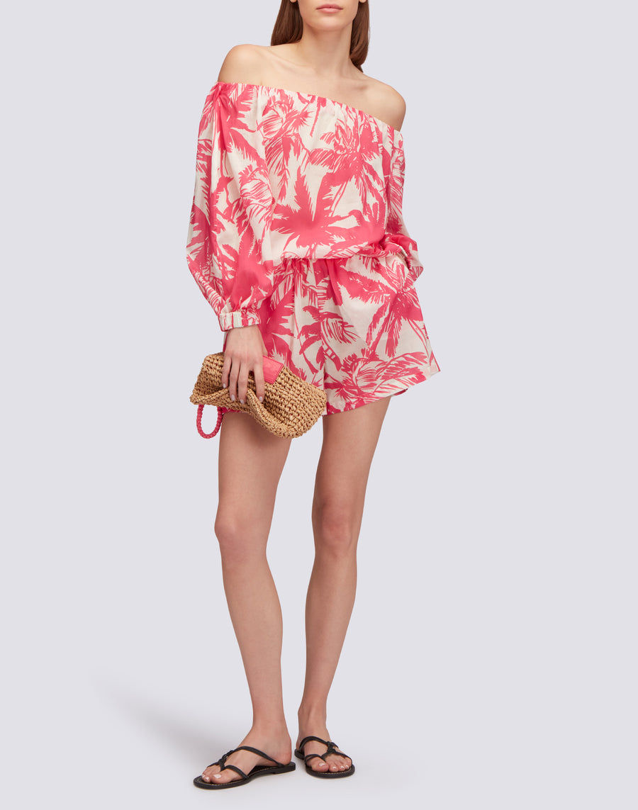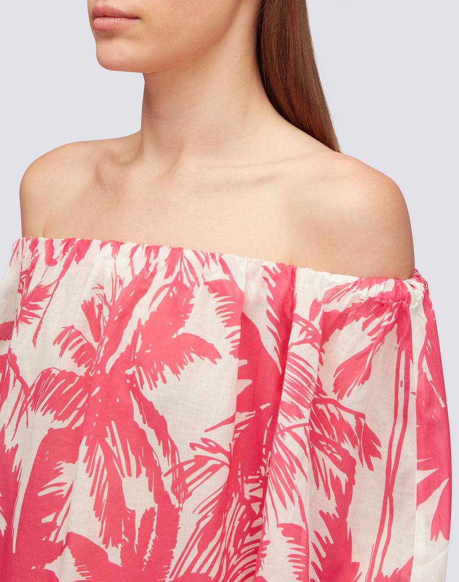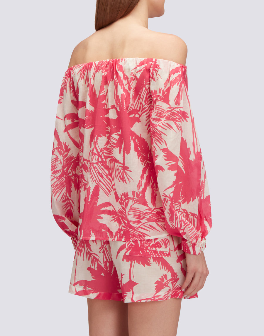 BLUSA DE GASA DE ALGODÓN CON ESTAMPADO DE SABANA TROPICAL