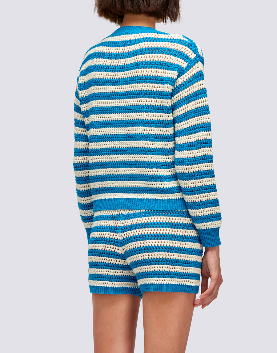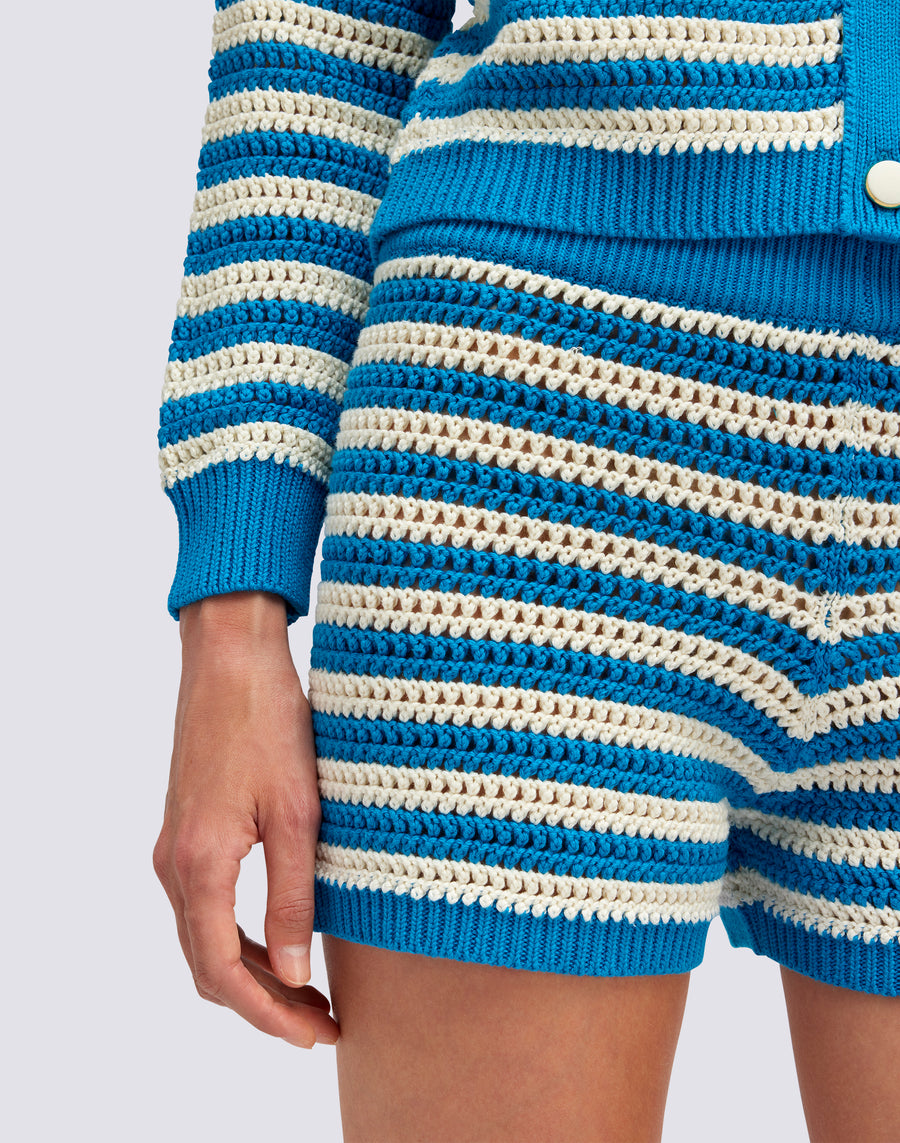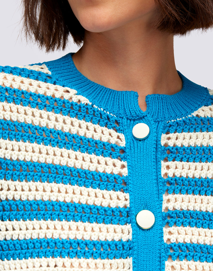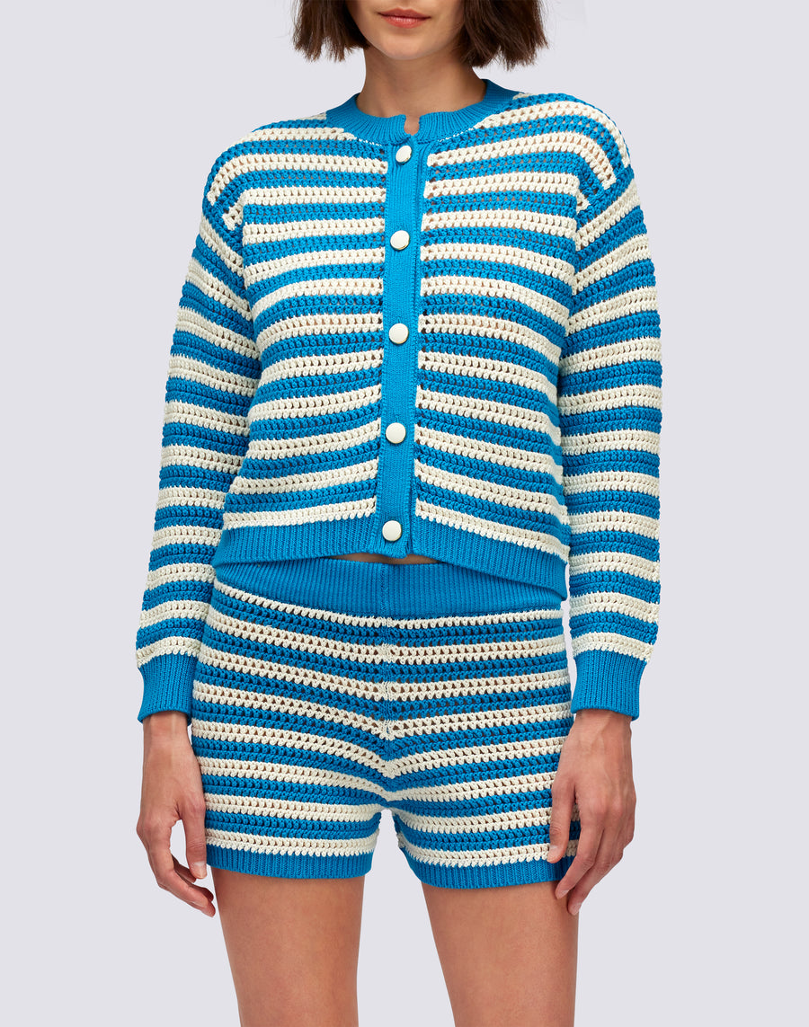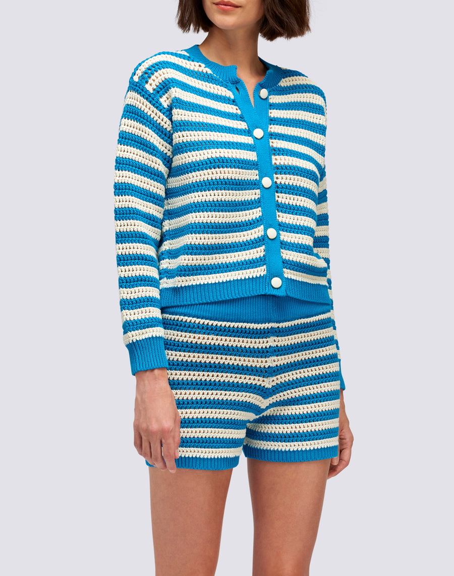 Confeccionado en suave punto de algodón, te mantendrá cómoda y a la moda. Este cárdigan bolero puede llevarse con su pantalón corto a juego.