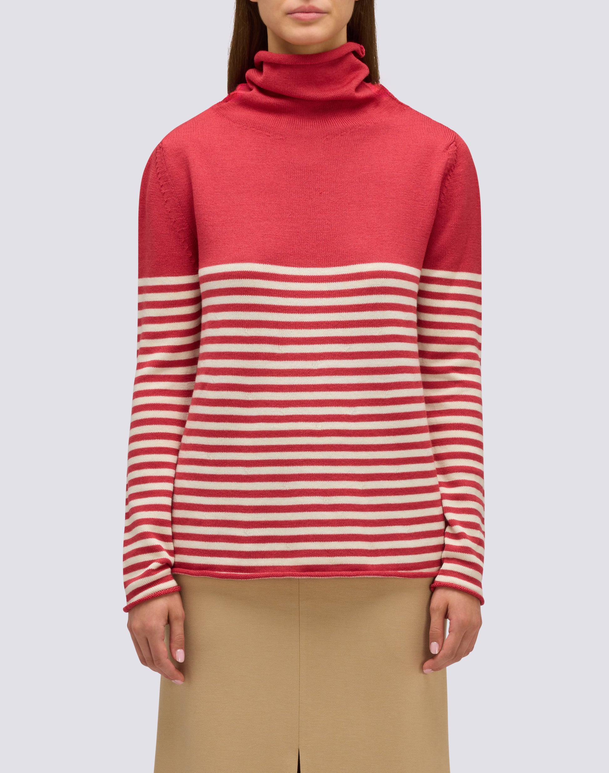 JERSEY DE MUJER CON CUELLO ALTO Y DETALLES DE RAYAS