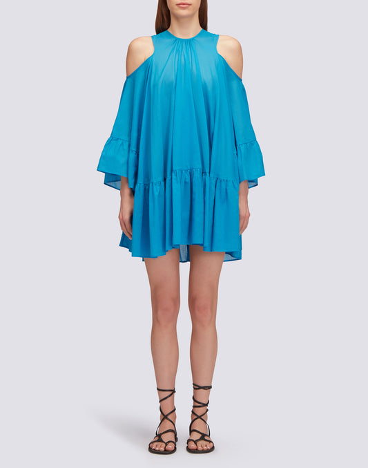 ROBE COURTE AVEC ÉPAULES DÉCOUVERTES EN VOILE DE COTON