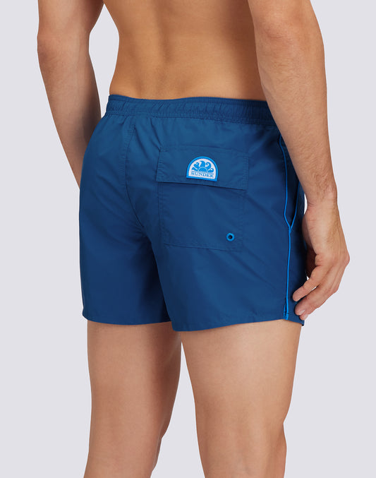 MAILLOT DE BAIN COURT ICONIQUE EN TAFFETAS AVEC PASSEPOIL CONTRASTÉ