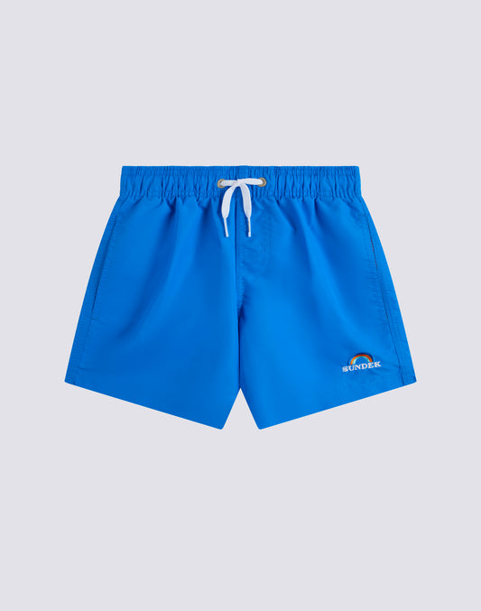 MAILLOT DE BAIN COURT À TAILLE ÉLASTIQUE EN TAFFETAS EMBLÉMATIQUE AVEC BRODERIE ARC-EN-CIEL