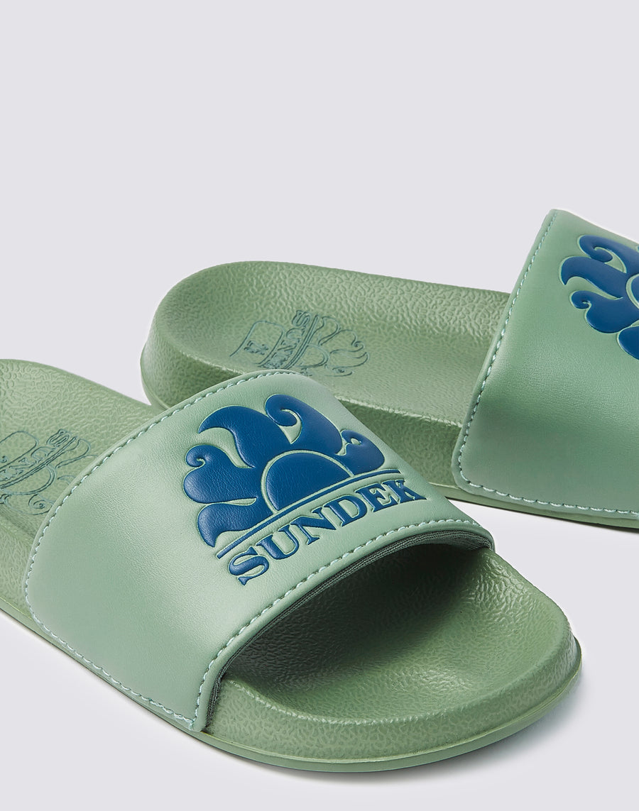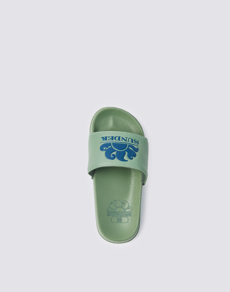 Chaussons bandeau Costa pour enfants, caoutchoutés et avec un ajustement confortable. Elles se caractérisent par l'impression contrastée du logo Sundek sur la bande et la hauteur de la semelle de 2,5 cm.