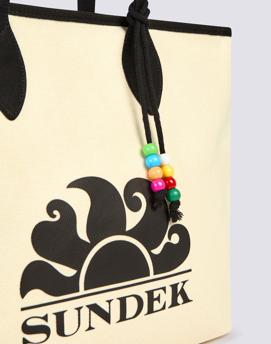 Sac cabas classique avec anses et décorations en perles arc-en-ciel. En toile de coton, c'est un modèle essentiel pour vos tenues quotidiennes.