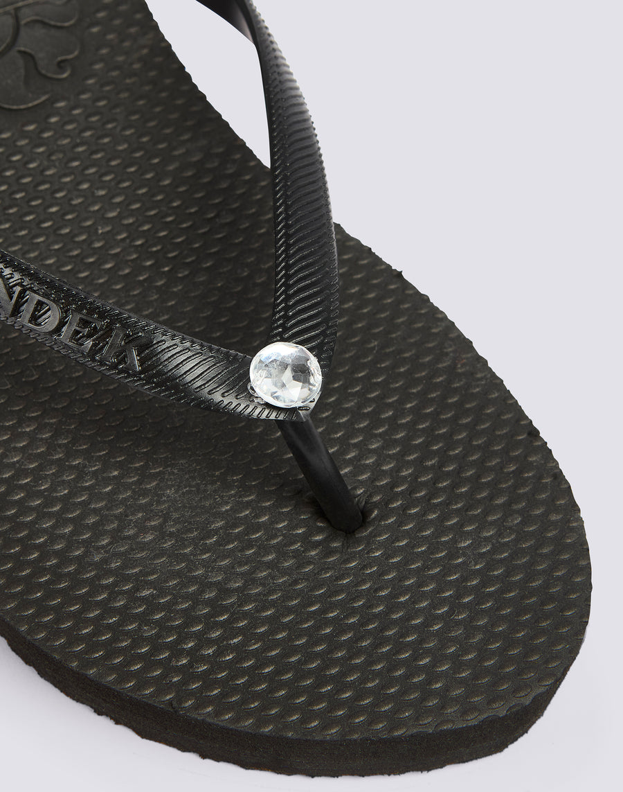 Tongs Toluca avec talon compensé. Elégant et parfait pour donner de l'élan grâce à la cale de 4 cm. Pétillant et glamour avec le swarosky appliqué sur la partie caoutchoutée supérieure.