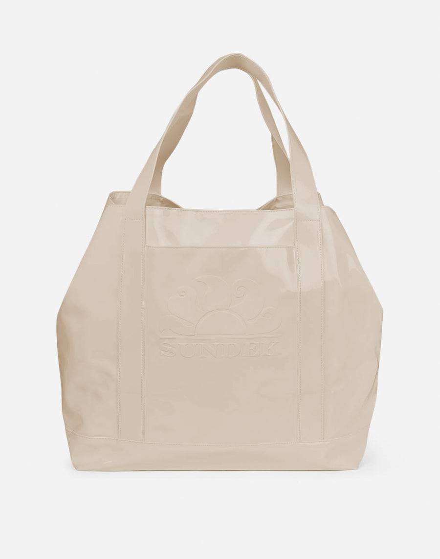 Le sac de plage parfait pour les journées d'été et pour la plage : spacieux et étanche pour contenir et protéger tout le contenu, avec un style sportif souligné par une finition brillante. Dimensions : 65 x 39 x 21 cm