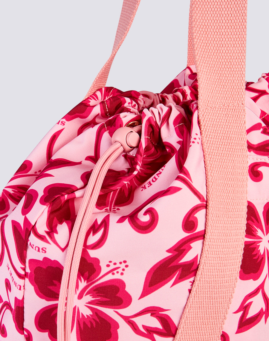 AVA - SAC EN NYLON AVEC POIGNÉES ET LACETS IMPRIMÉS HIBISCUS SK23