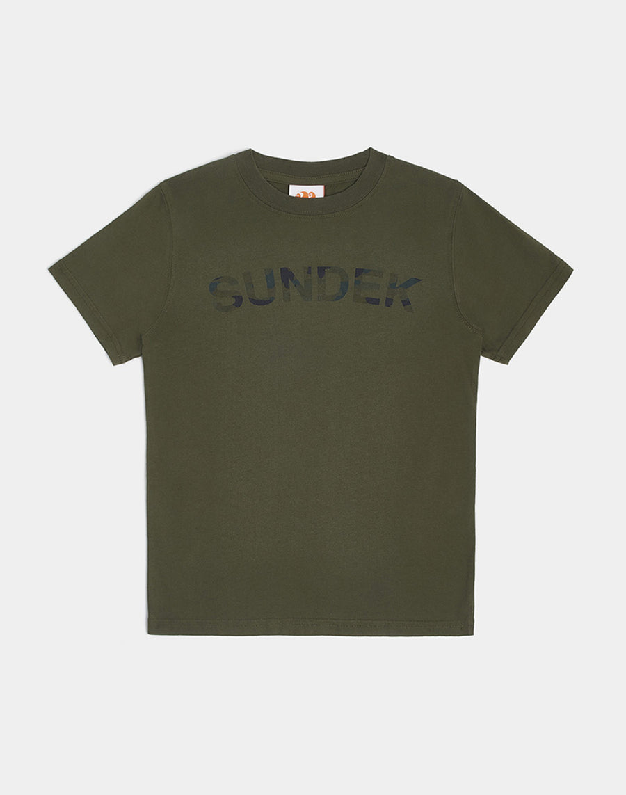T-shirt col rond garçon en jersey de coton. Logo Sundek imprimé sur le devant avec effet camouflage. Coupe régulière.