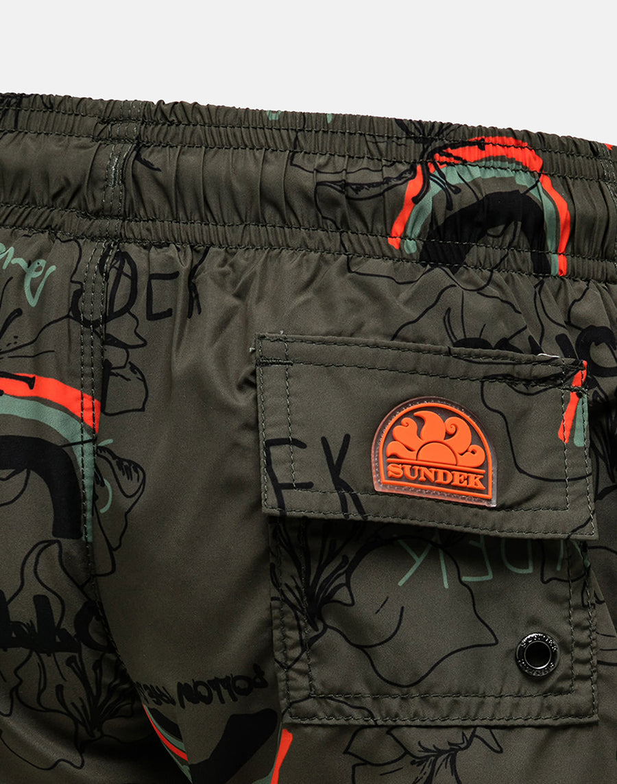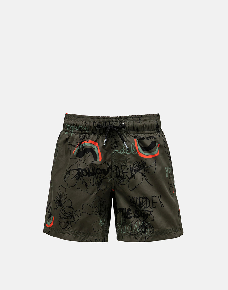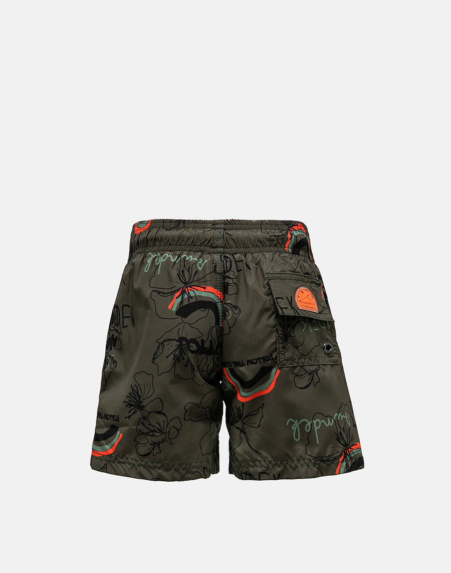 L'imprimé fleuri de ce maillot de bain garçon se superpose à un dessin naïf qui rend le graphisme ludique et original. Il s'enfile en un clin d'œil, est très léger, sèche rapidement et est fabriqué dans un tissu recyclé respectueux de l'environnement. Ce