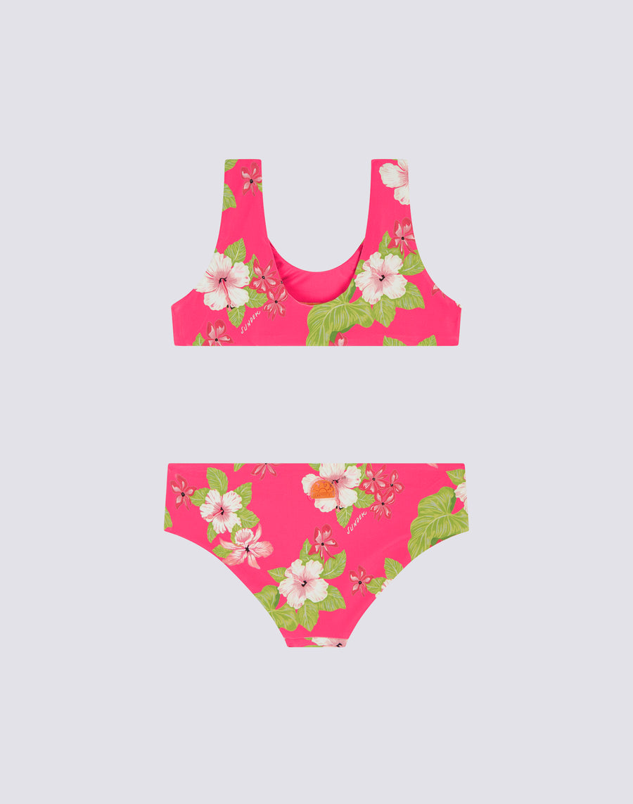Mini bikini avec haut sportif et bas fixe en imprimé Dreamy Hawaii pour les filles. Coloré et très confortable.