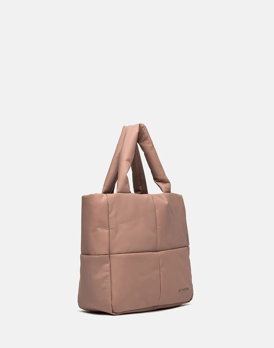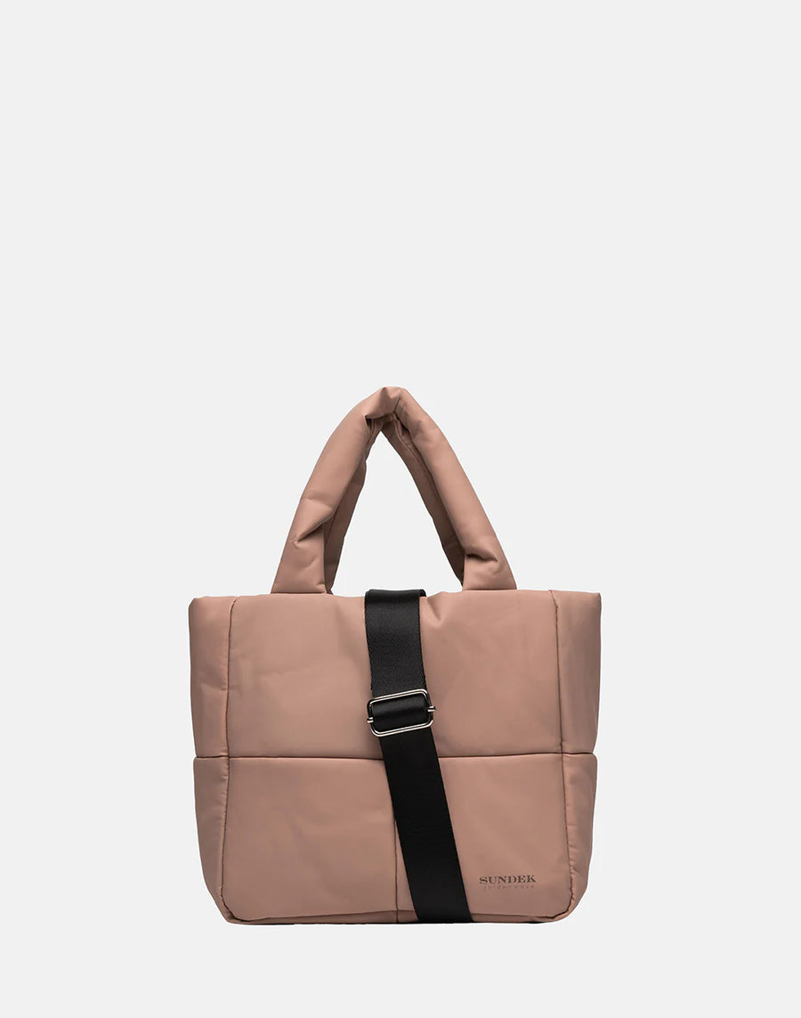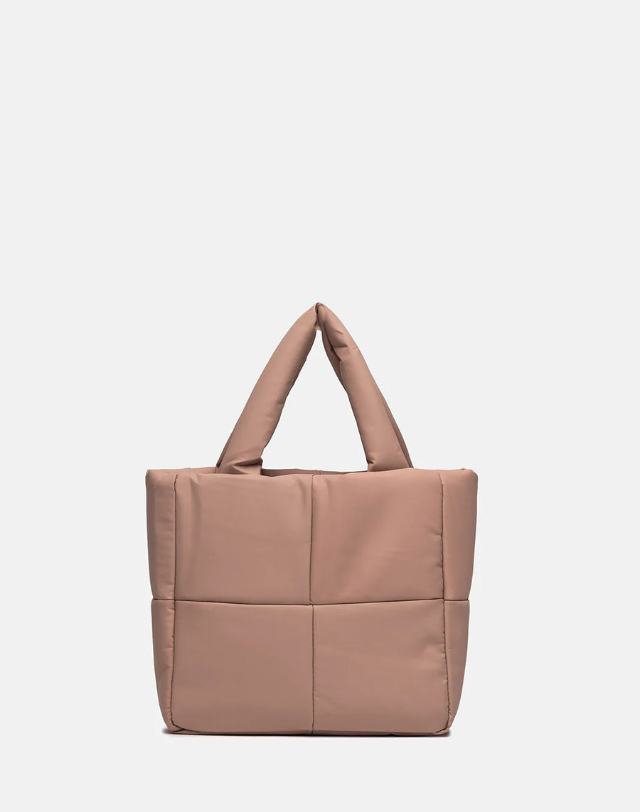 Sac cabas modèle regular effet matelassé. Ouvert, deux anses pratiques et logo imprimé ton sur ton. Bandoulière amovible