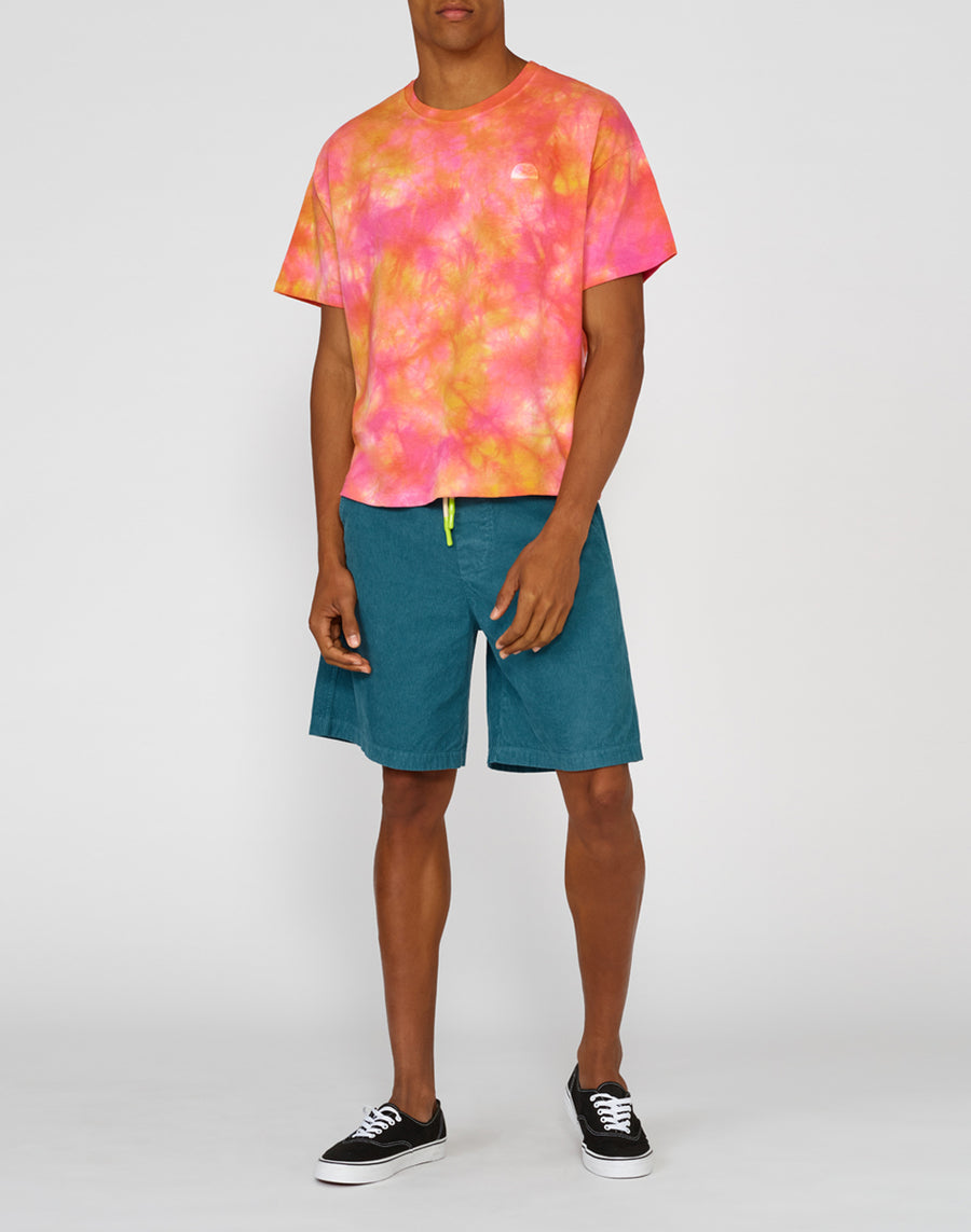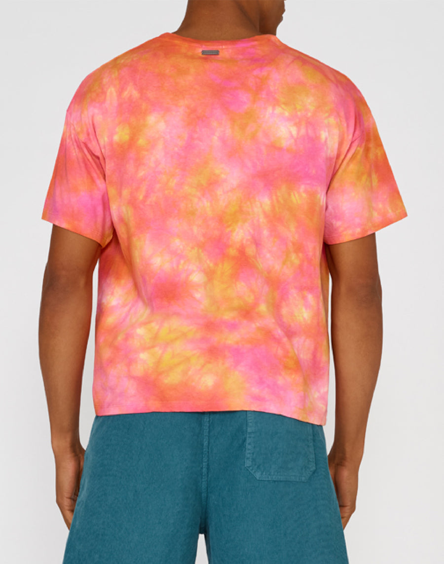 Un style décontracté et des suggestions de couleurs pour ce T-shirt en jersey de coton pour homme avec un traitement tie-dye, une technique spéciale de coloration du tissu.