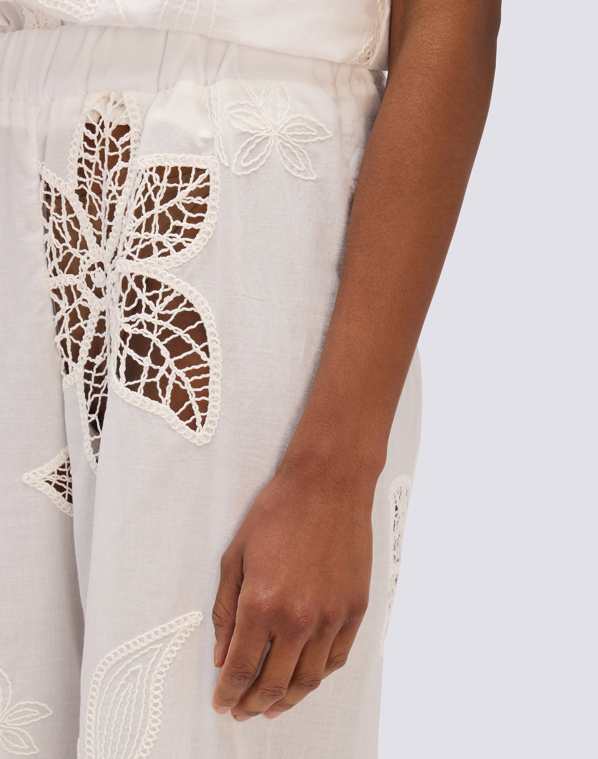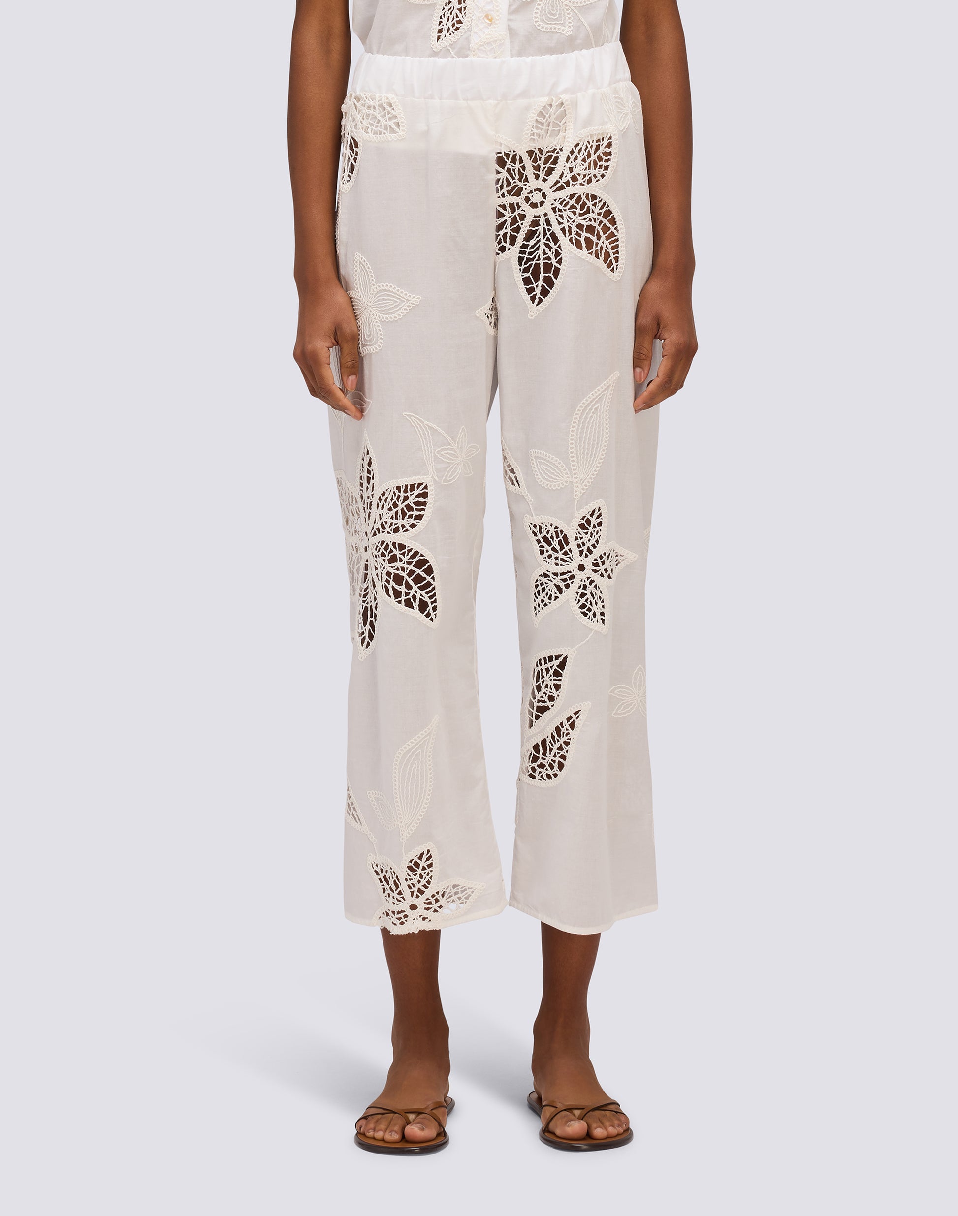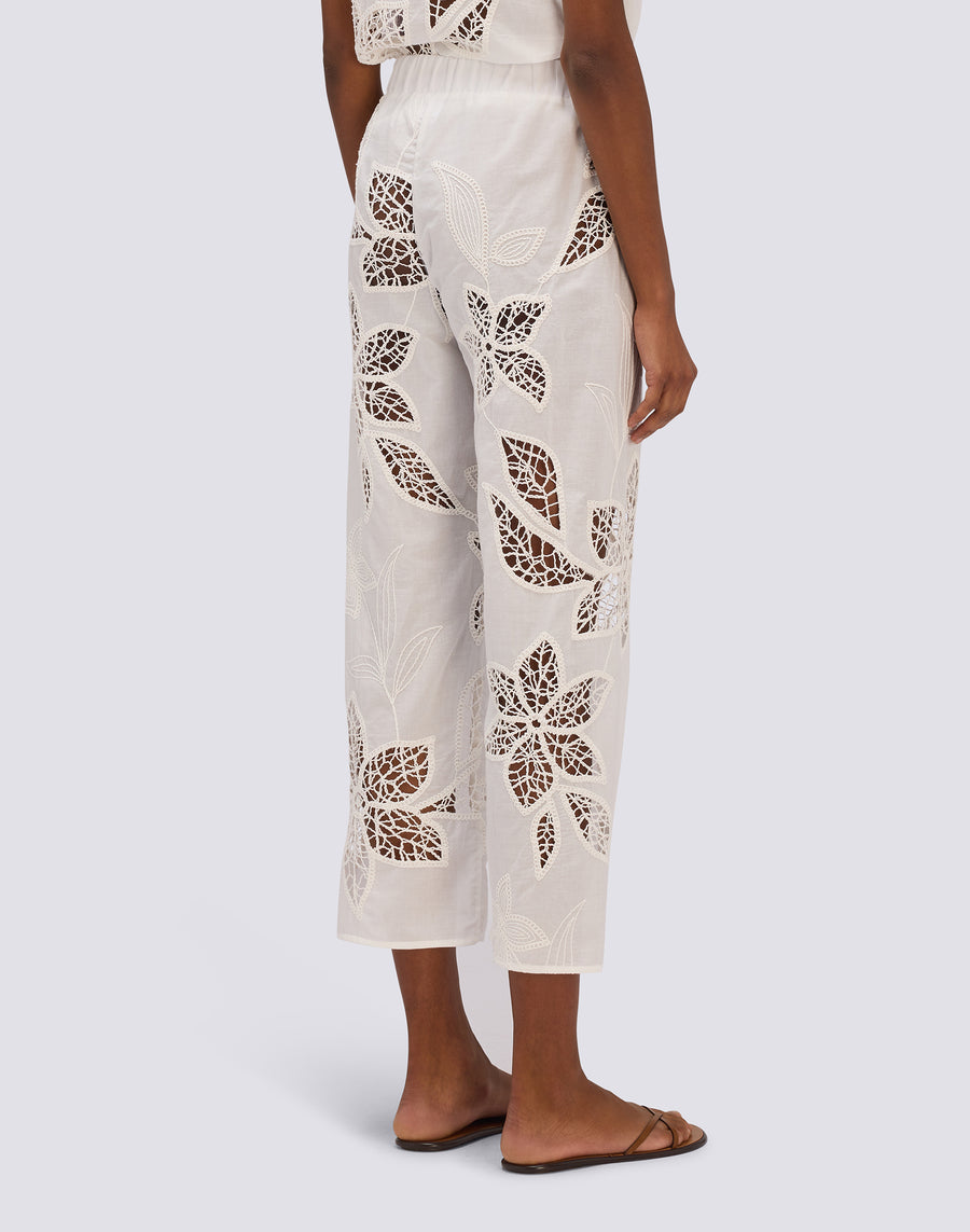 PANTALON LONG POUR FEMME EN BRODERIE ANGLAISE AVEC TAILLE ÉLASTIQUE