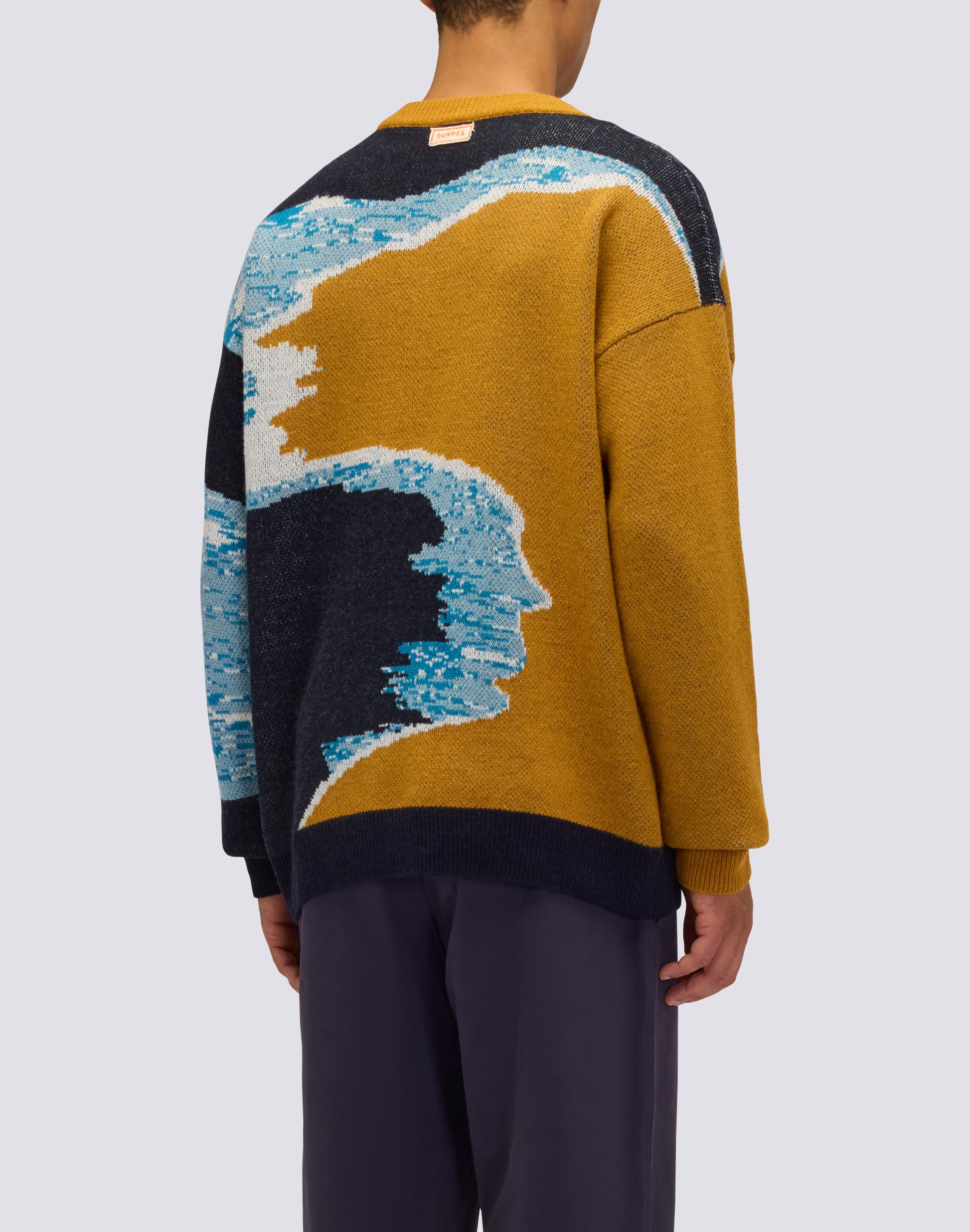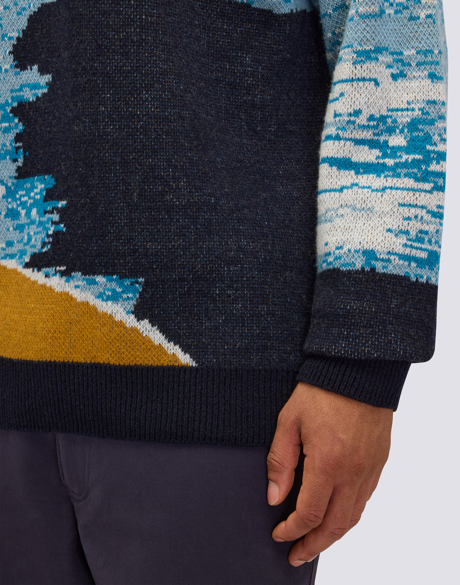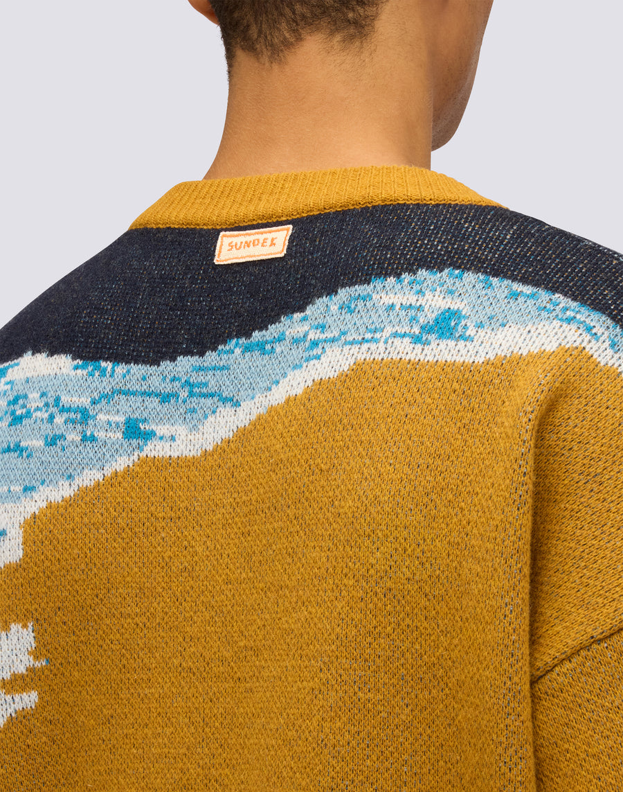 PULL COL V JACQUARD POUR HOMME AUX COULEURS EFFET MER
