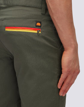 68% POLYAMIDE 27% POLYESTER 5% ÉLASTHANNE Tissu hybride confortable, résistant et à séchage rapide.