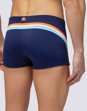 Boxer de bain pour homme à taille ajustable avec cordon de serrage et cordon de serrage contrasté : c'est un modèle intemporel en phase avec son temps car il est éco-durable grâce au tissu régénéré ECONYL® Made in Italy. Vous pouvez le porter aussi bien pour nager que pour bronzer et bronzer. Longueur de jambe extérieure 9"/23cm (en taille M).