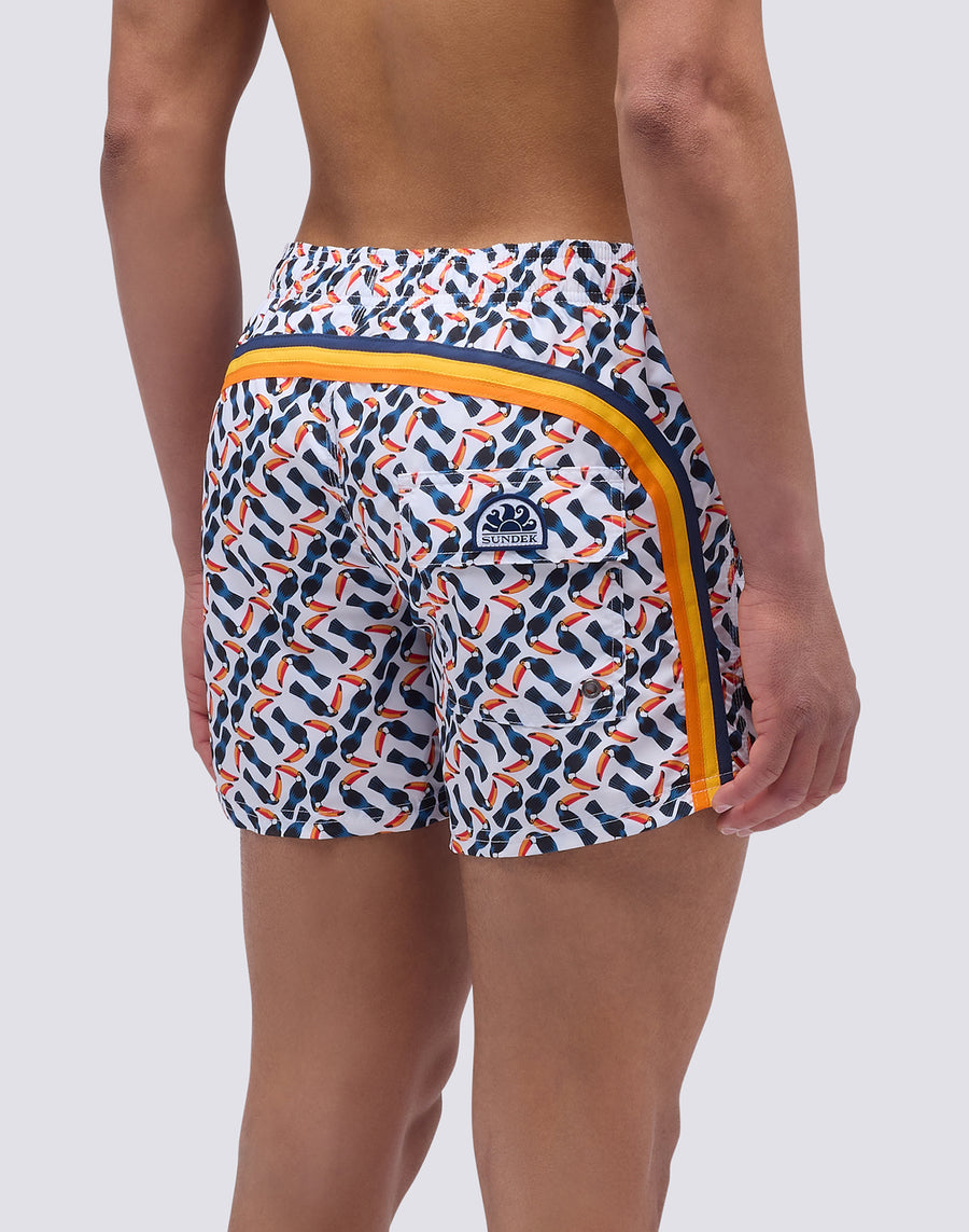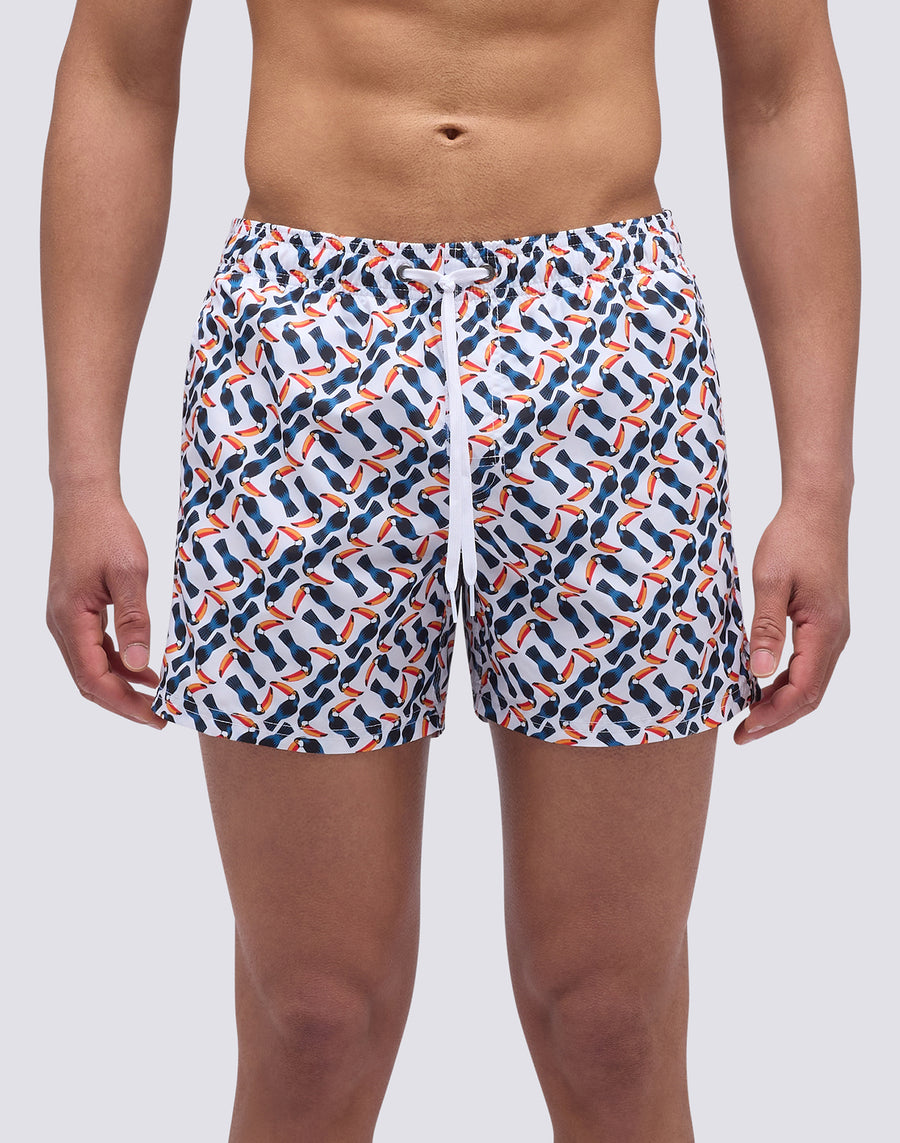 MAILLOT DE BAIN COURT À TAILLE ÉLASTIQUE ET IMPRIMÉ MULTI TOUCAN