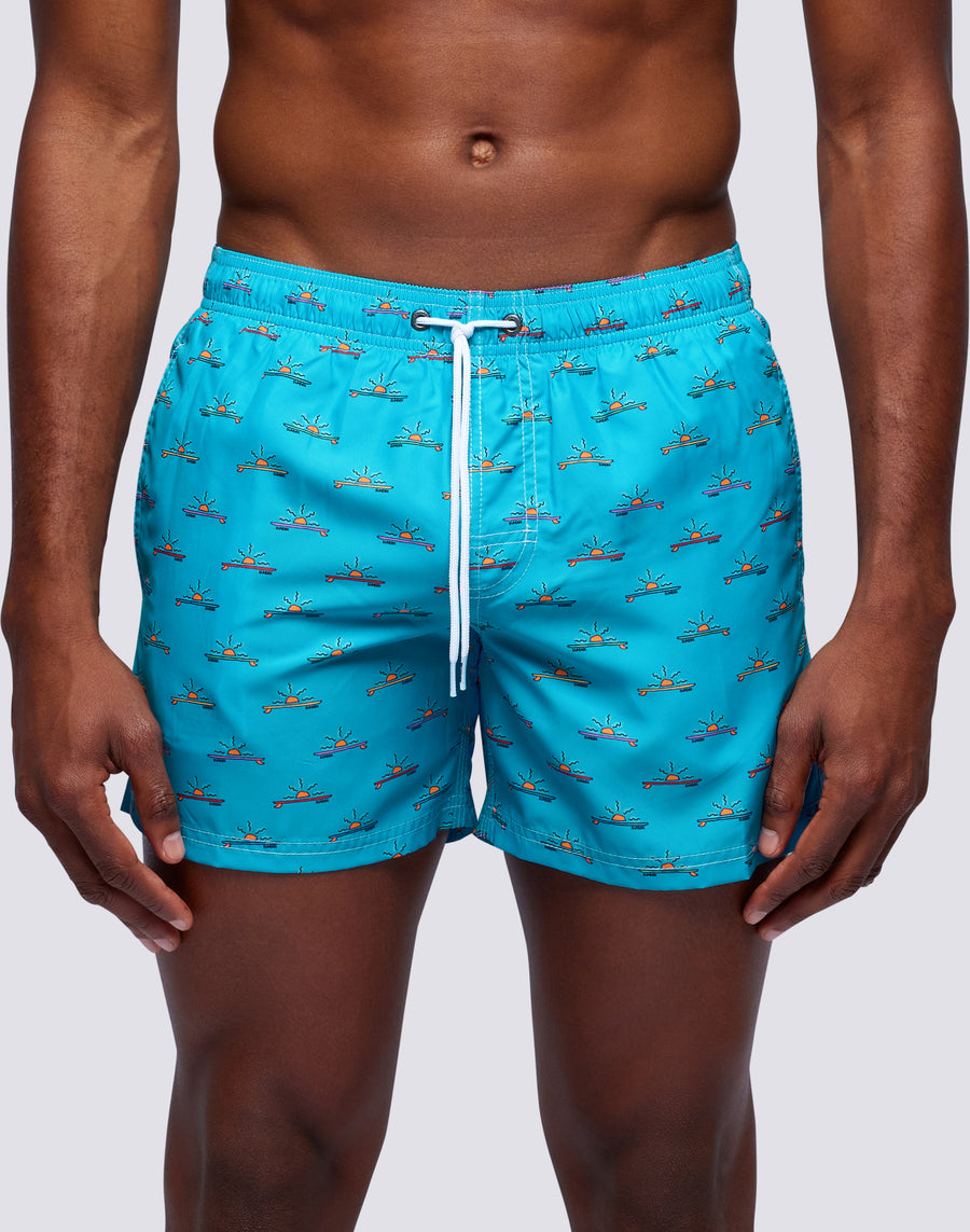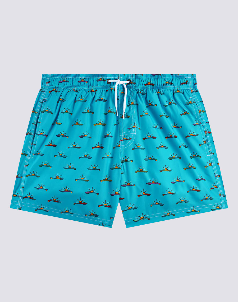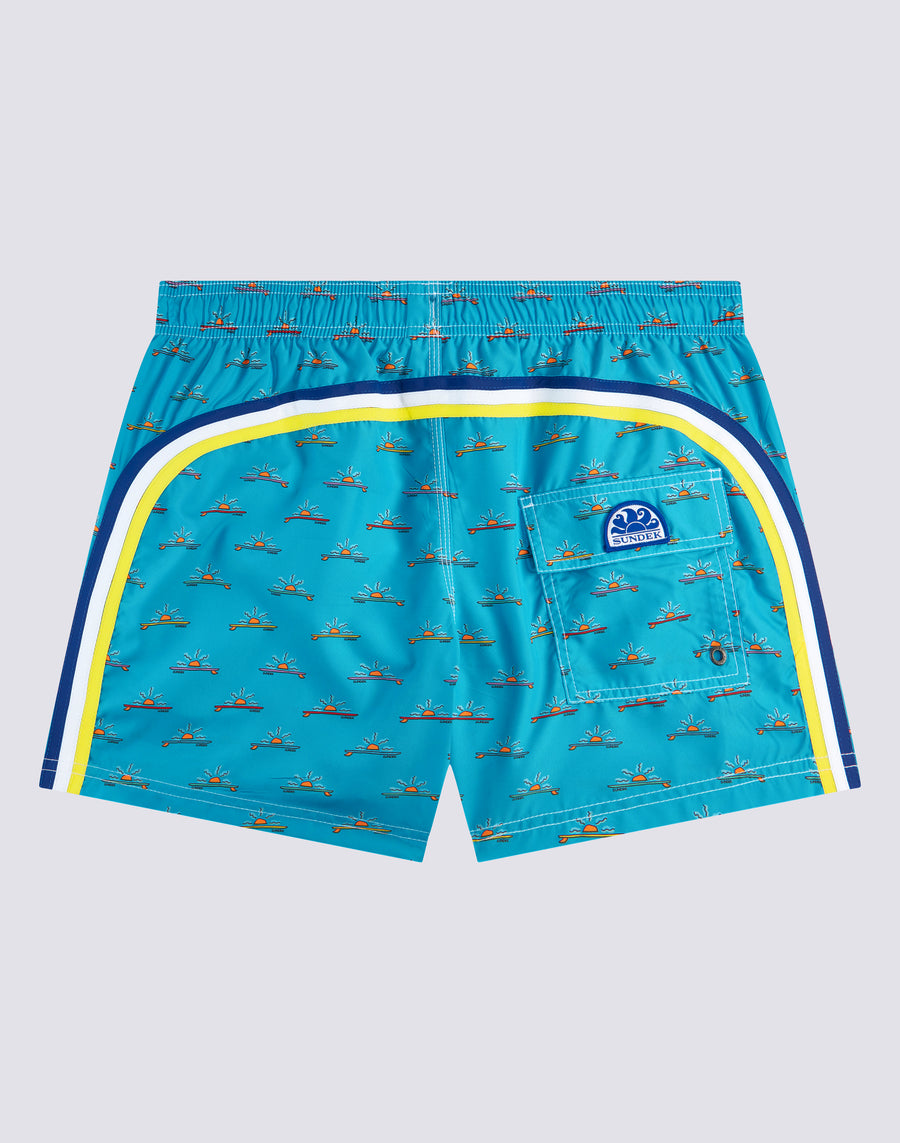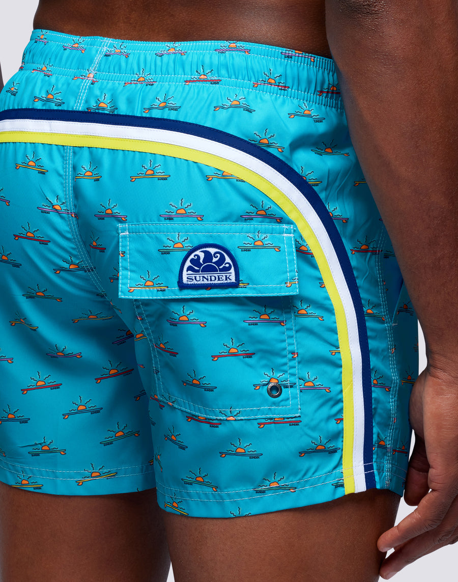 SHORT DE BAIN COURT TAILLE ÉLASTIQUÉE MICROIMPRIMÉ SUNBOARD REPREVE®